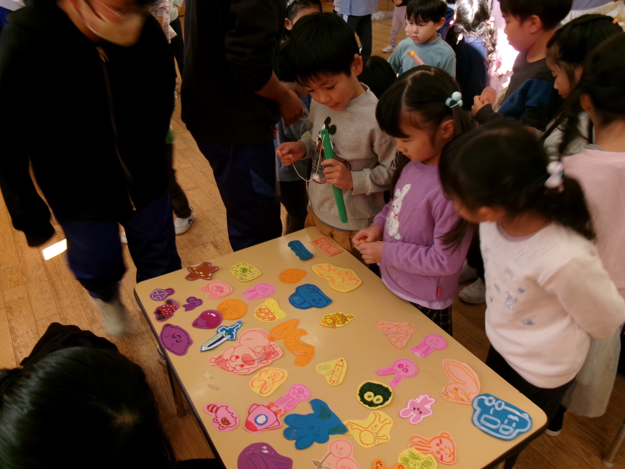 男の子たちが行列を作っていたのは、野球盤ゲーム。ホームランも飛び出していました。![]()