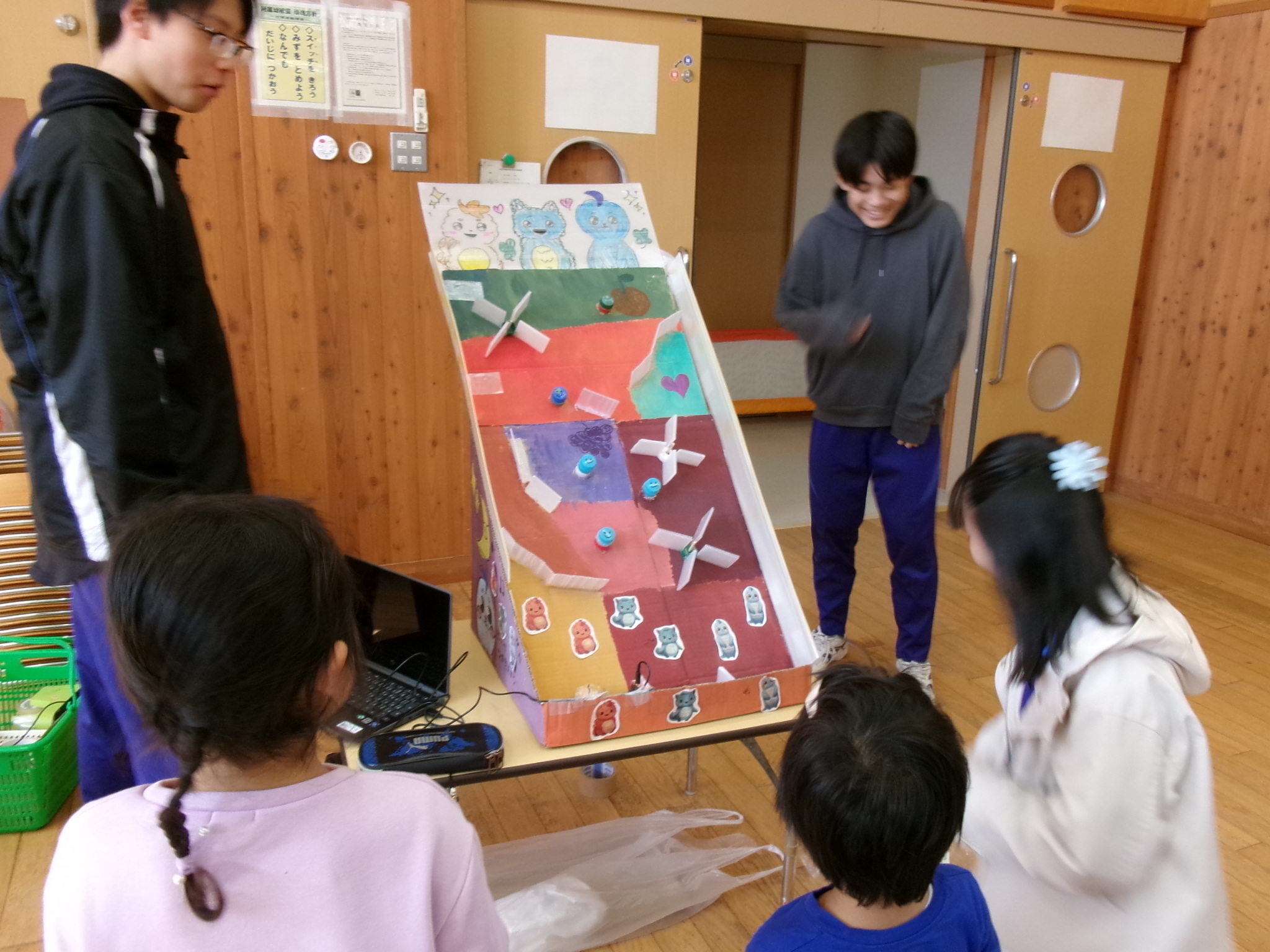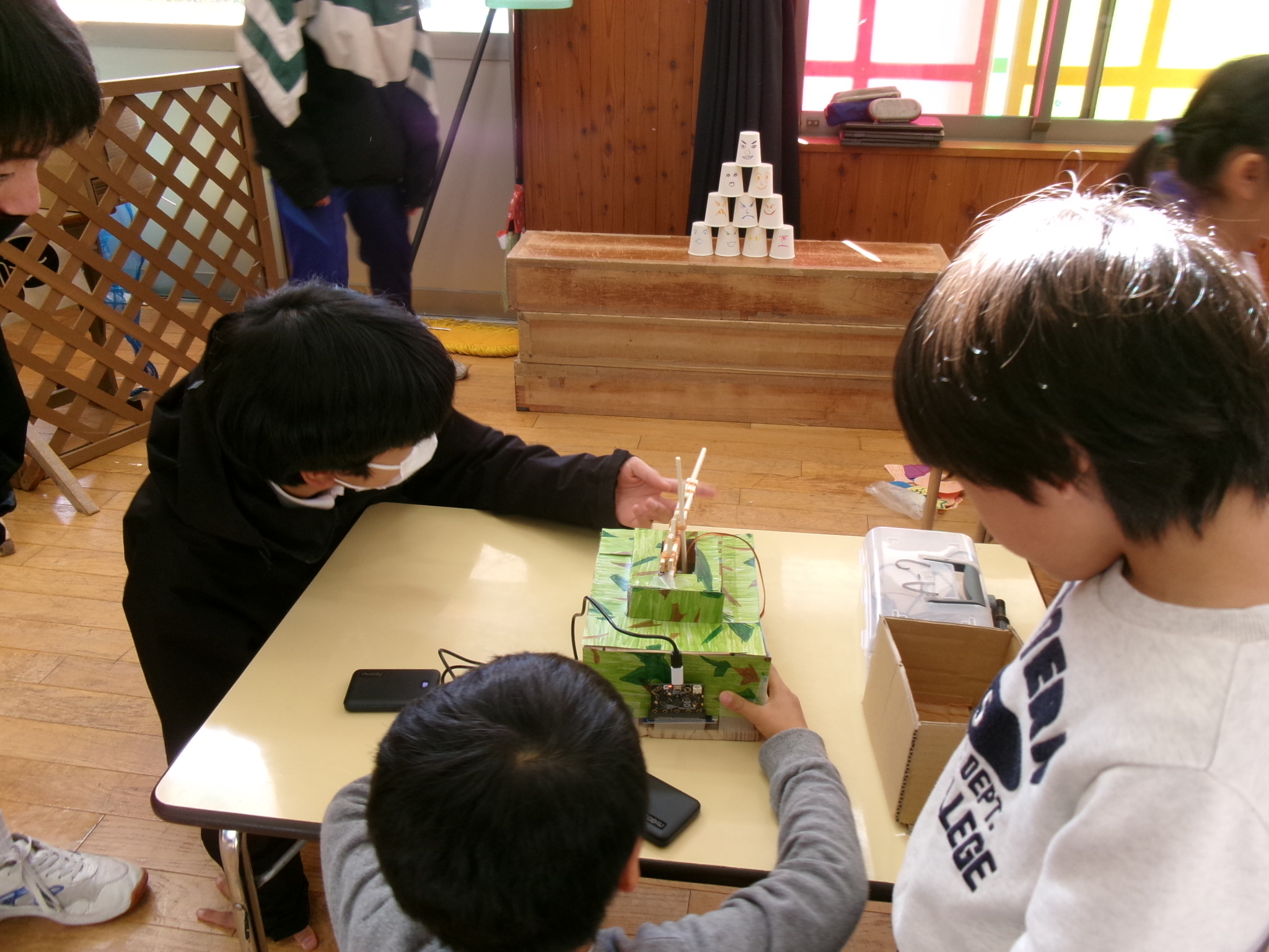 技術の授業の中で、制作をしているので、プログラミングで、色々な仕掛けがされています。