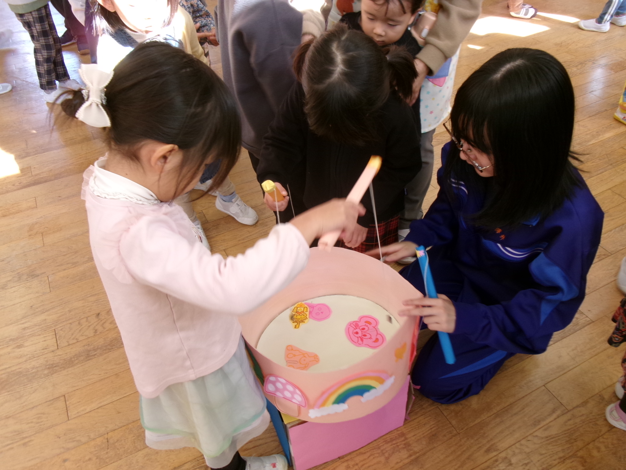 「たのしいおもちゃを色々考えて持ってきました。みんな、楽しんでくださいね」