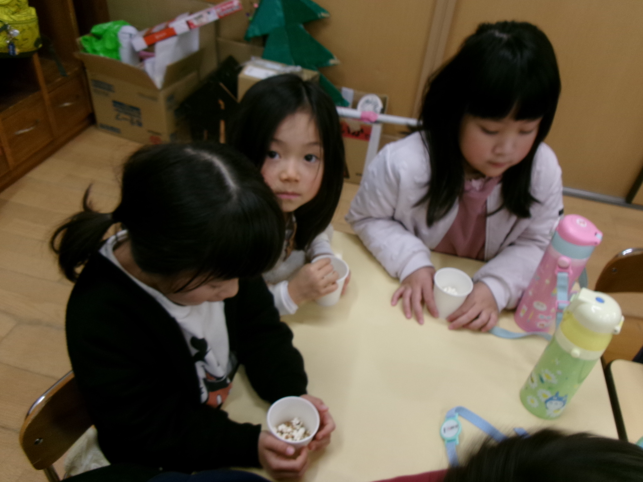NEWS & TOPICS 2025/12/22 園の様子 2025/12/22 〇ポップコーン会(年長) 今日は、年長さんのポップコーン会でした。 みんな、興味津々。 「あっ、弾けてきたよ!」 おいしそうだねえ。 「いただきまーす」 幼稚園での最後のポップコーン会、美味しく頂きました。 〇保育ドキュメンテーション 前へ 一覧にもどる 次へ