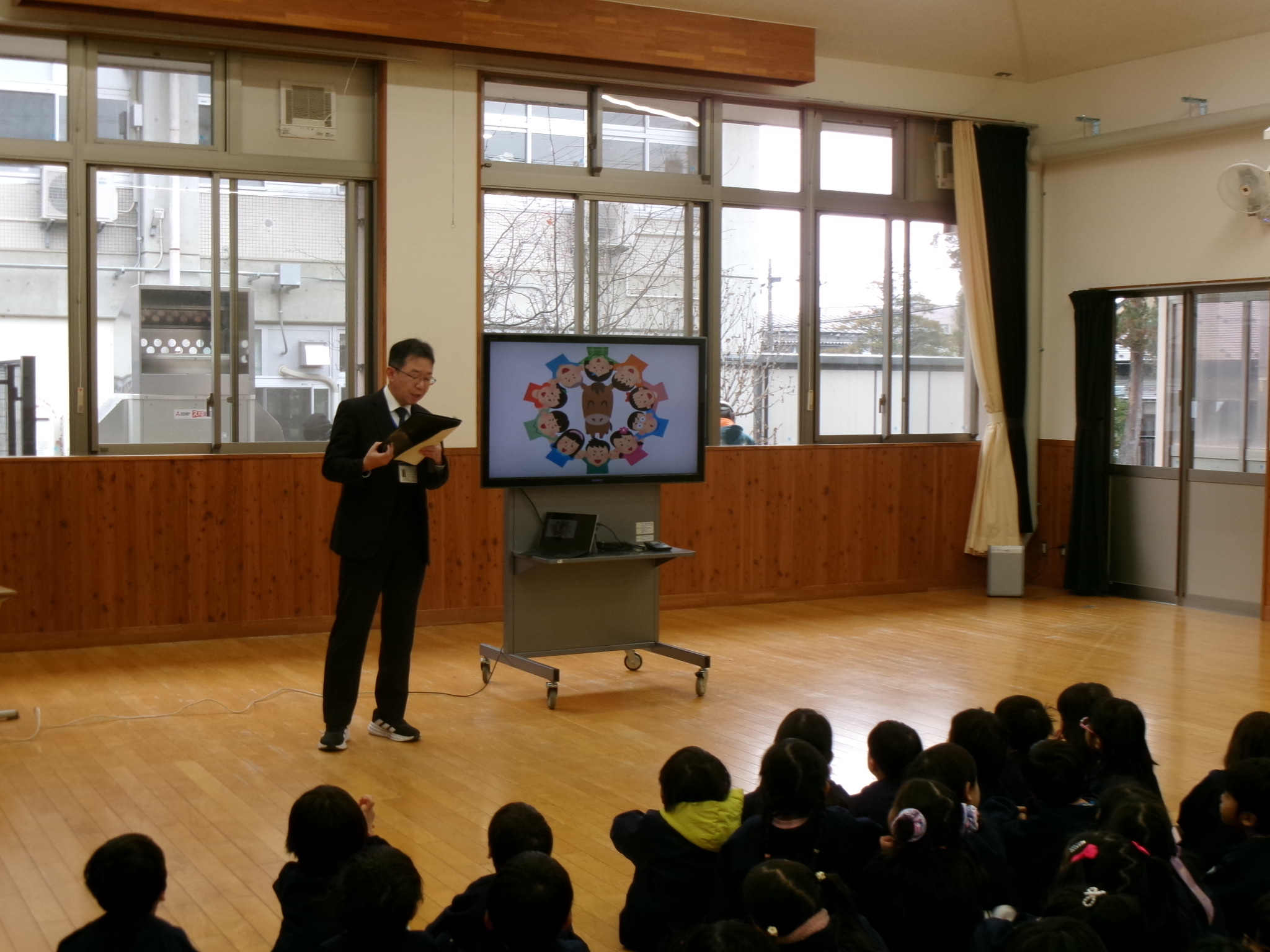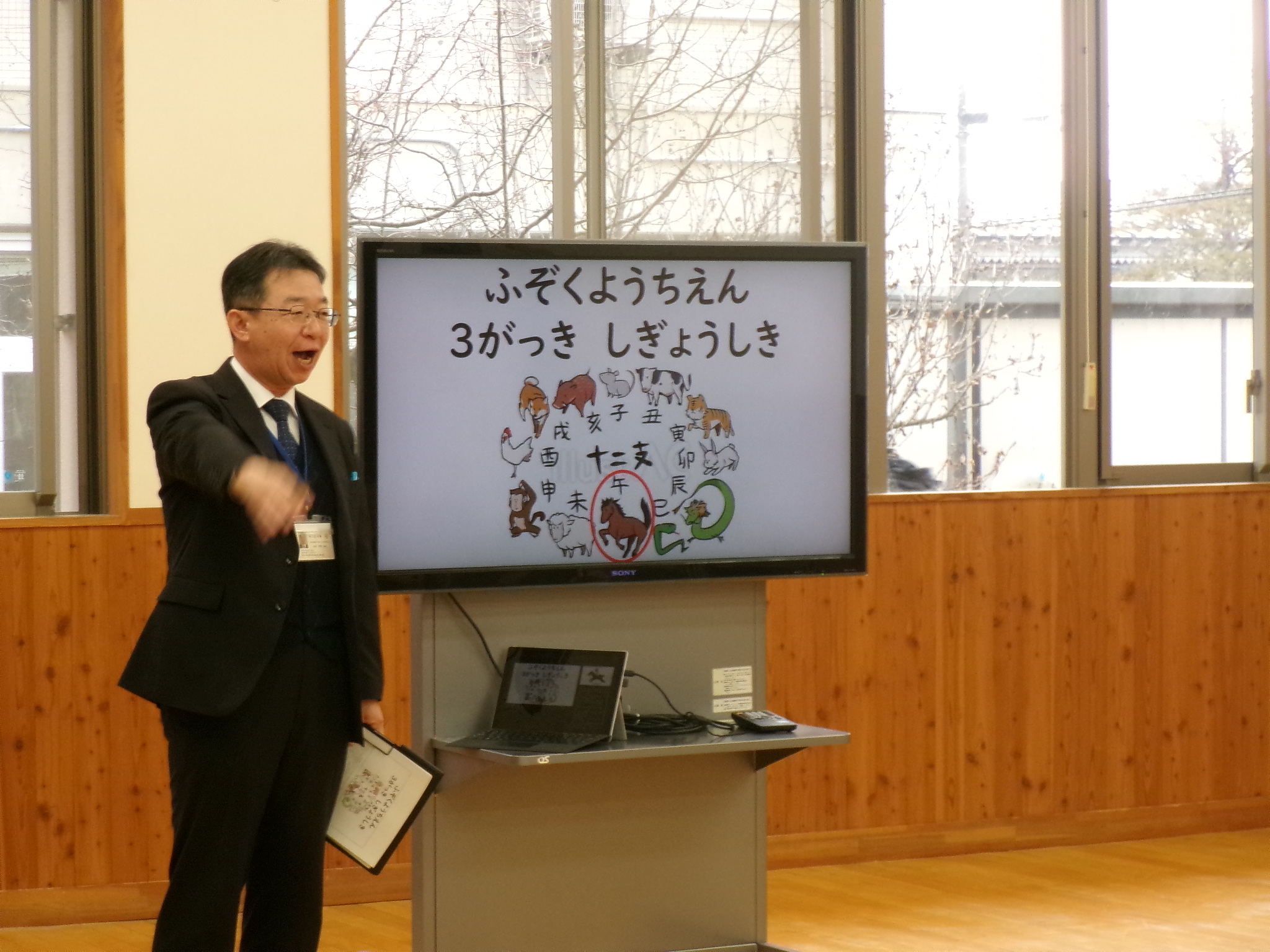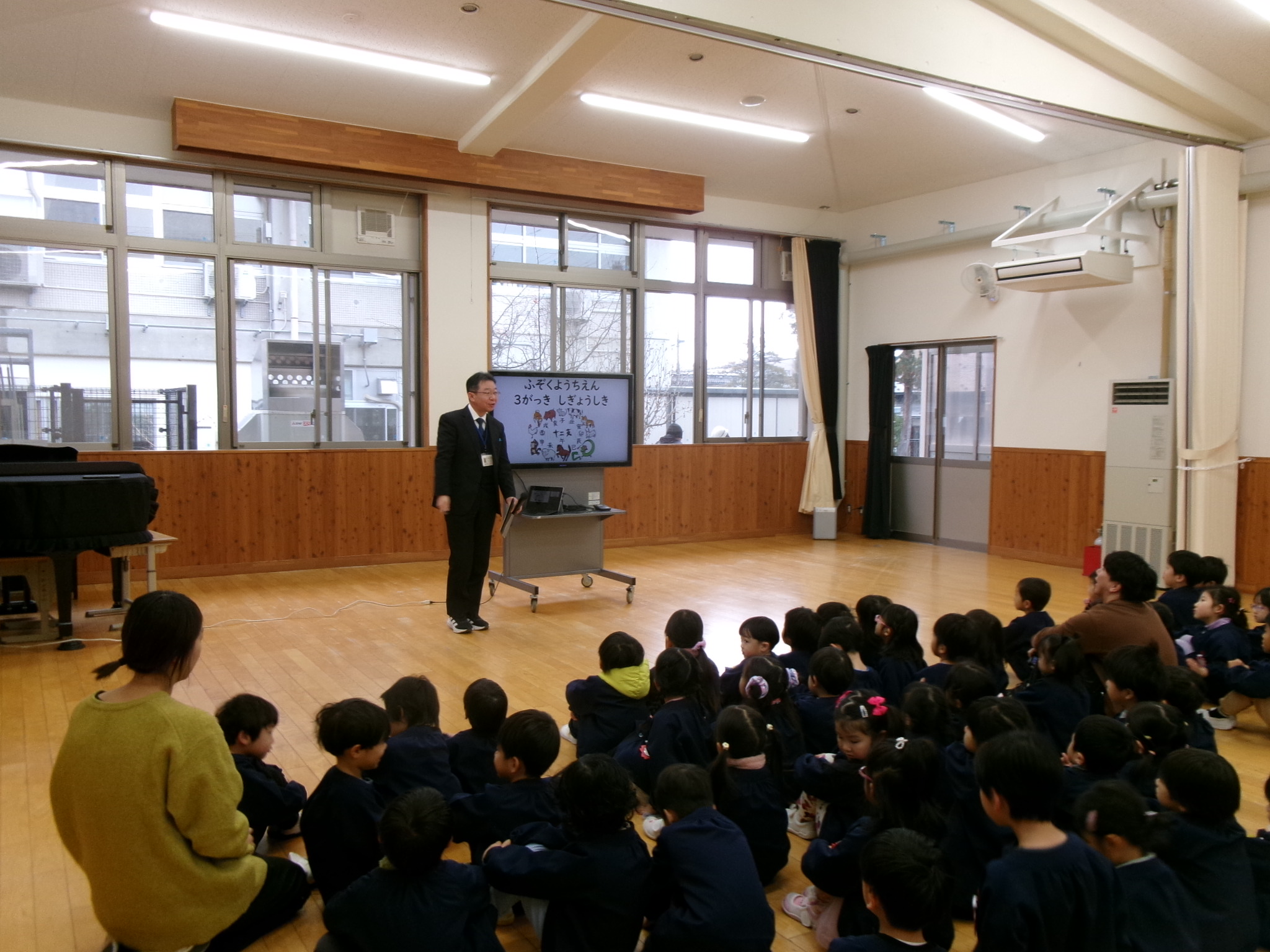今年最初の園歌を歌います。久しぶりに歌いましたが、みんなしっかり覚えていました。