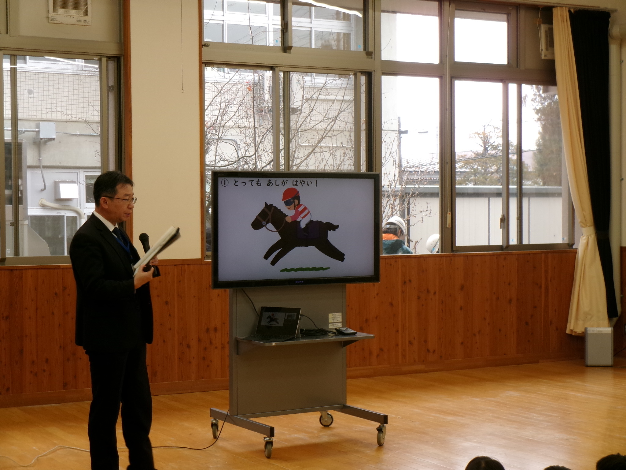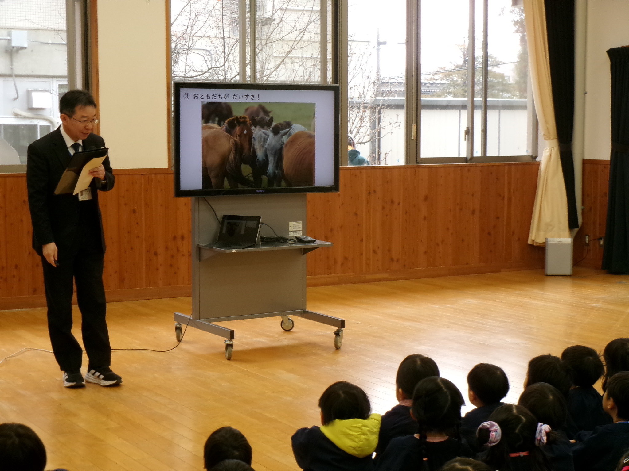 一歩一歩、頑張って坂道を上がっていくお馬さんのお話をお聞きしました。