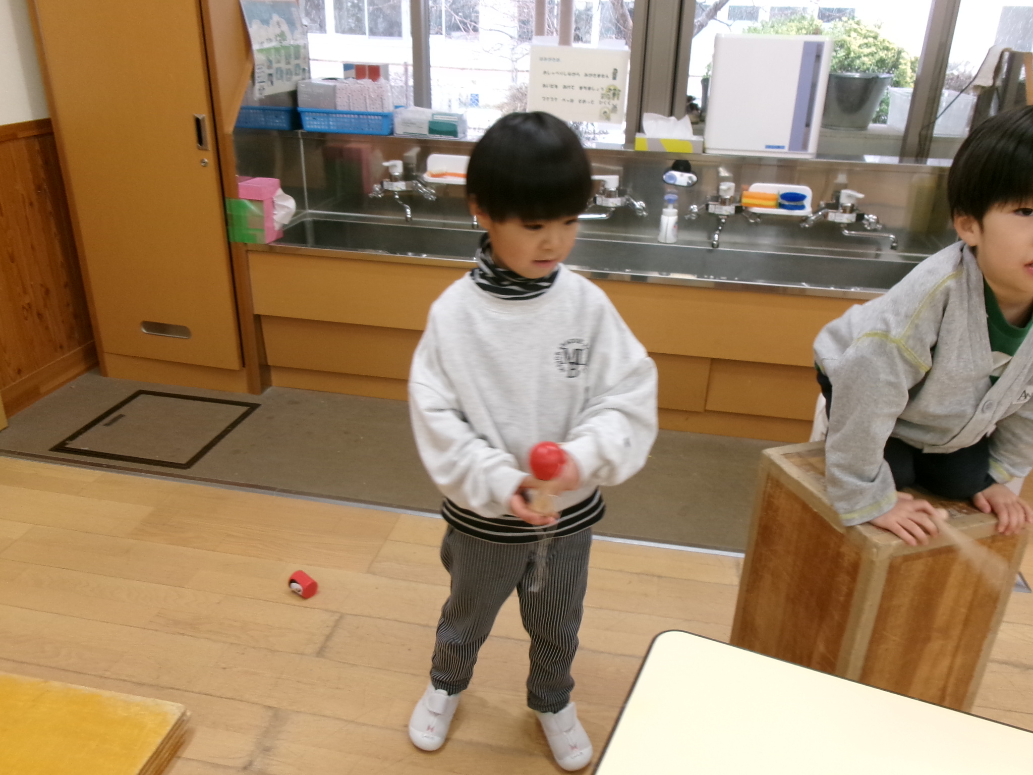 久しぶりの幼稚園ですが、みんな初日から思い思いに遊んでいきます。