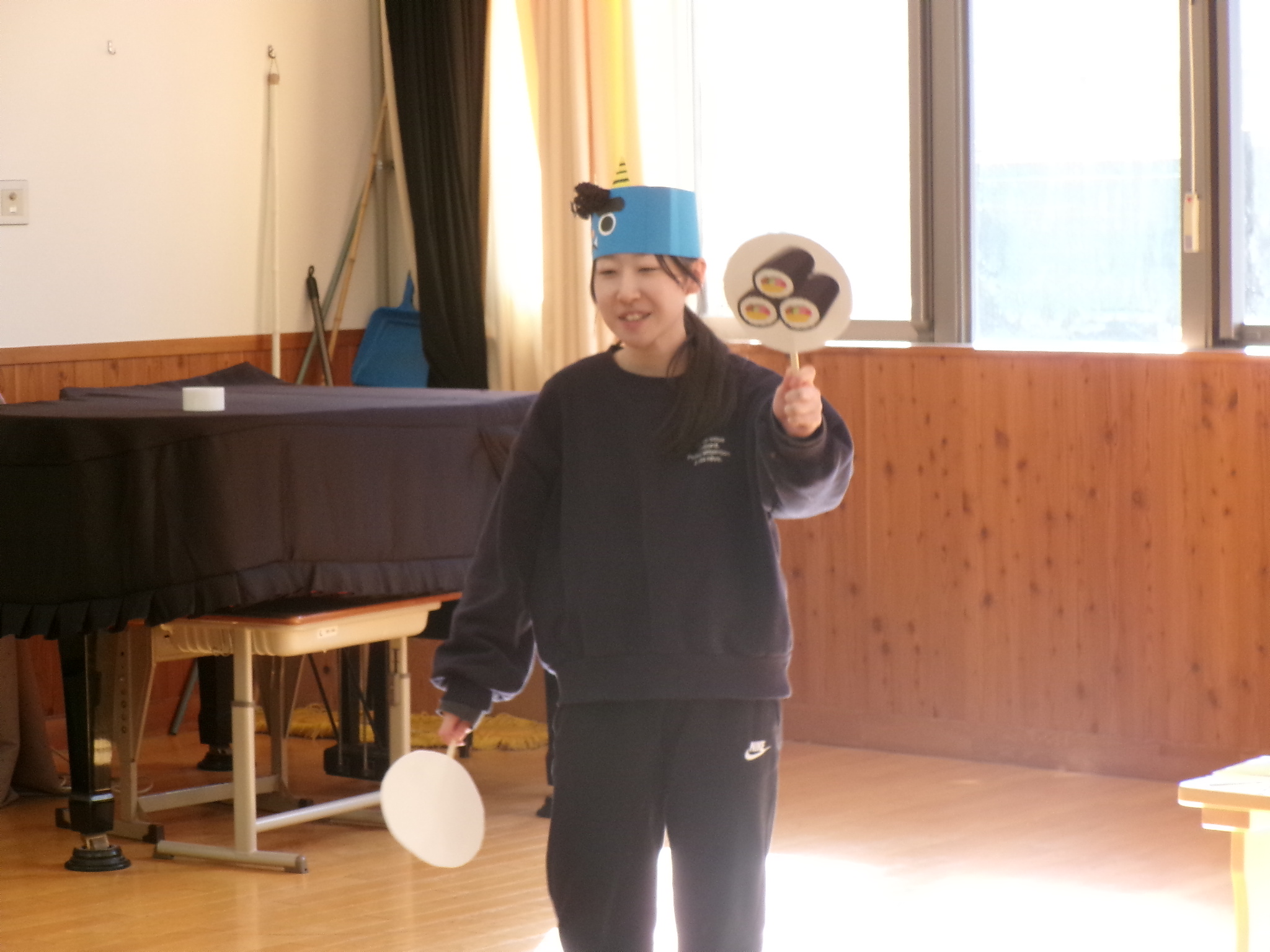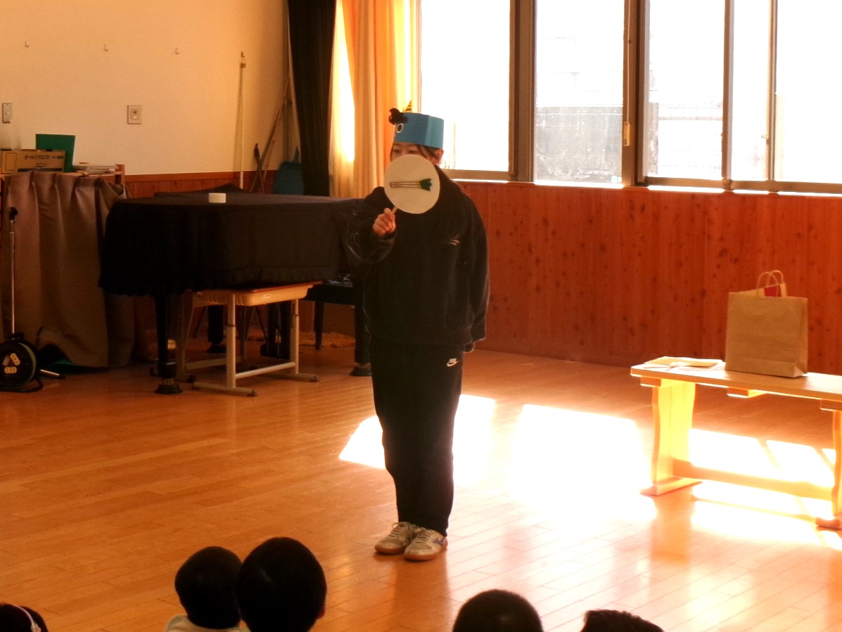 「もうすぐやってくるのは何でしょうか?」「節分!」ということで、節分クイズが始まります。