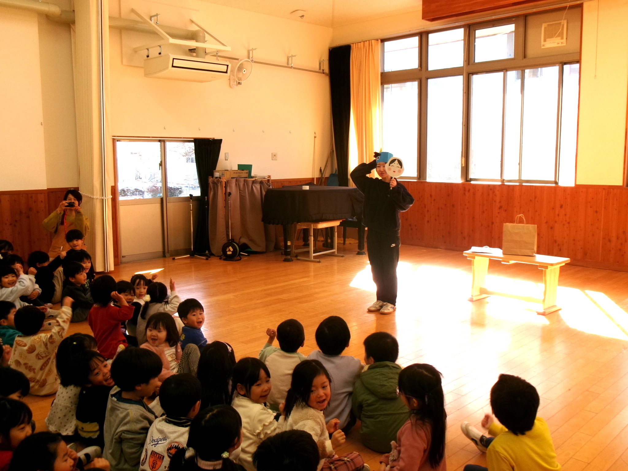 みんなで、「まめまき」の歌を歌いました。