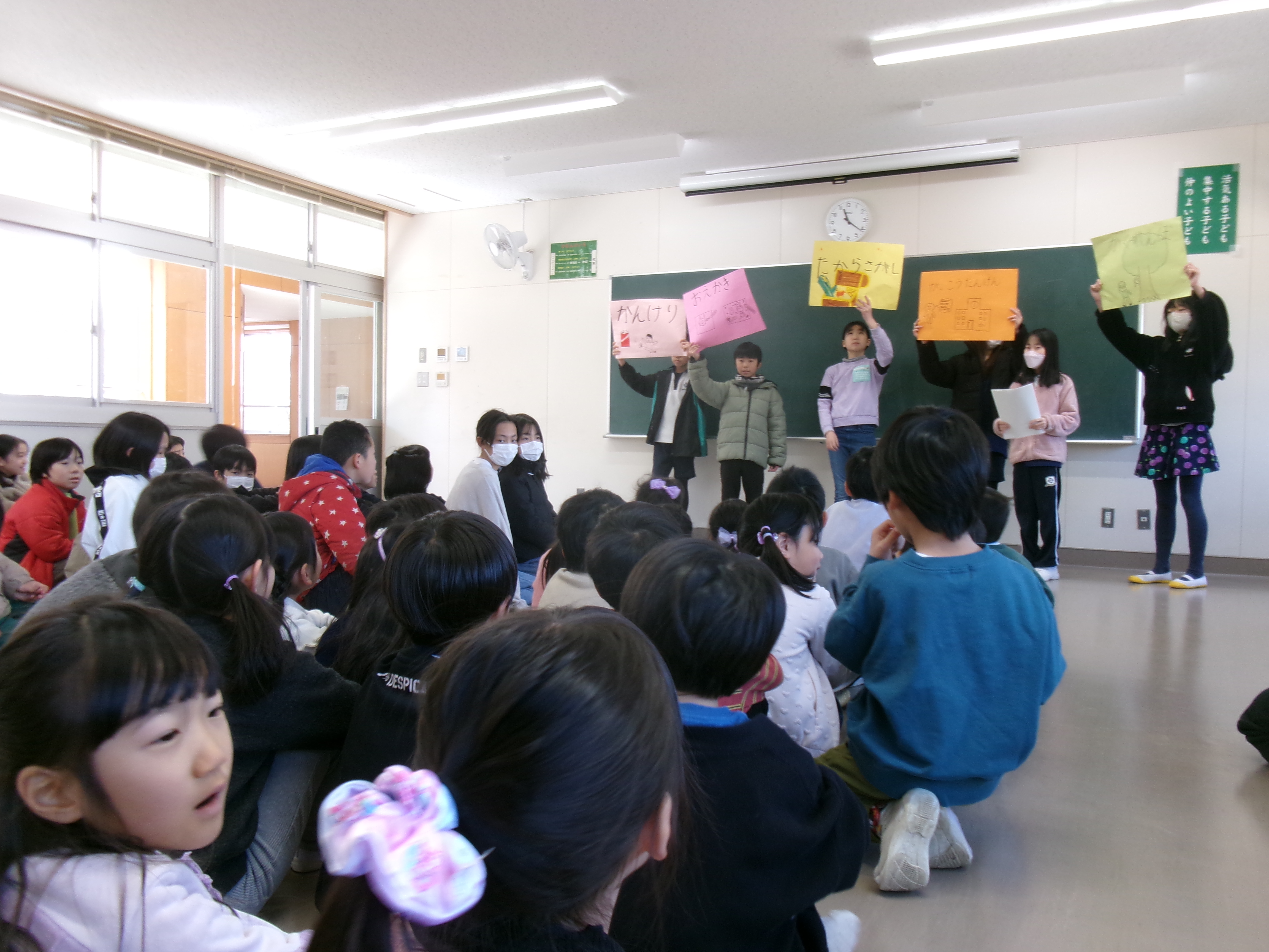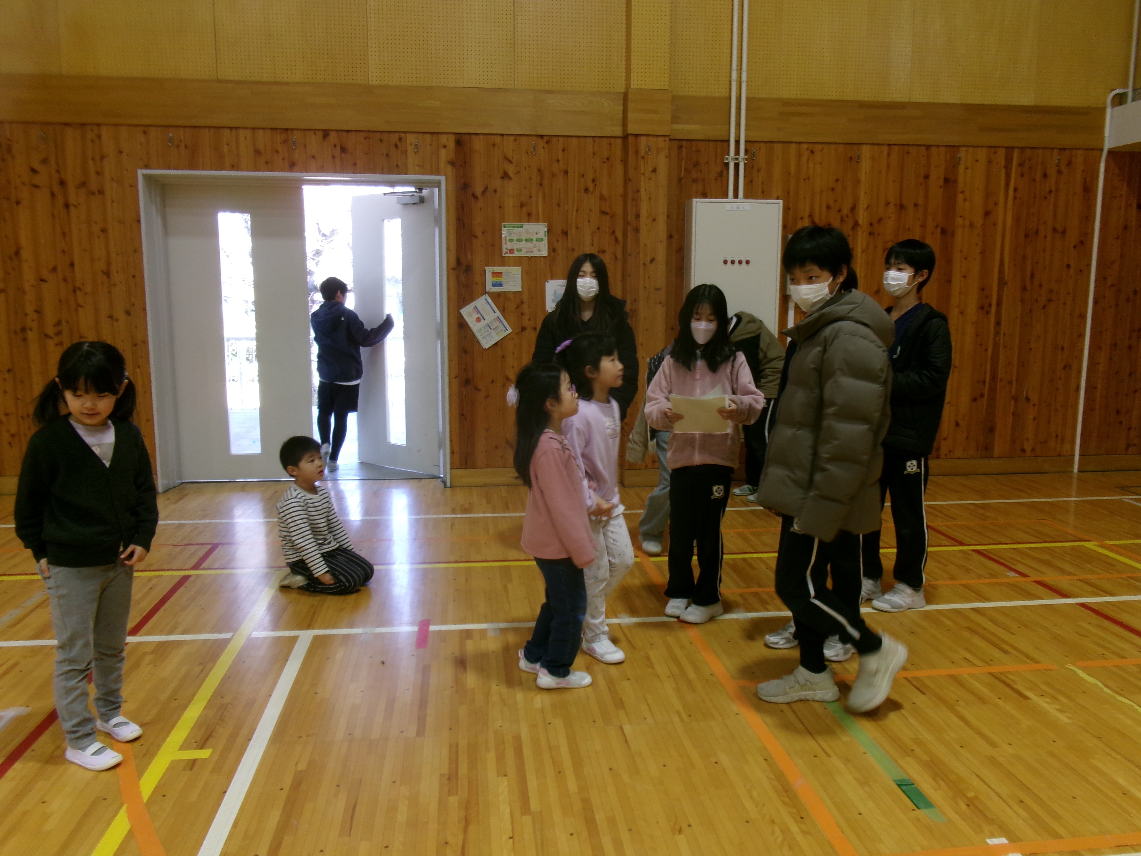 お隣の附属小学校へ招待してもらい、一緒にレクを行いました。