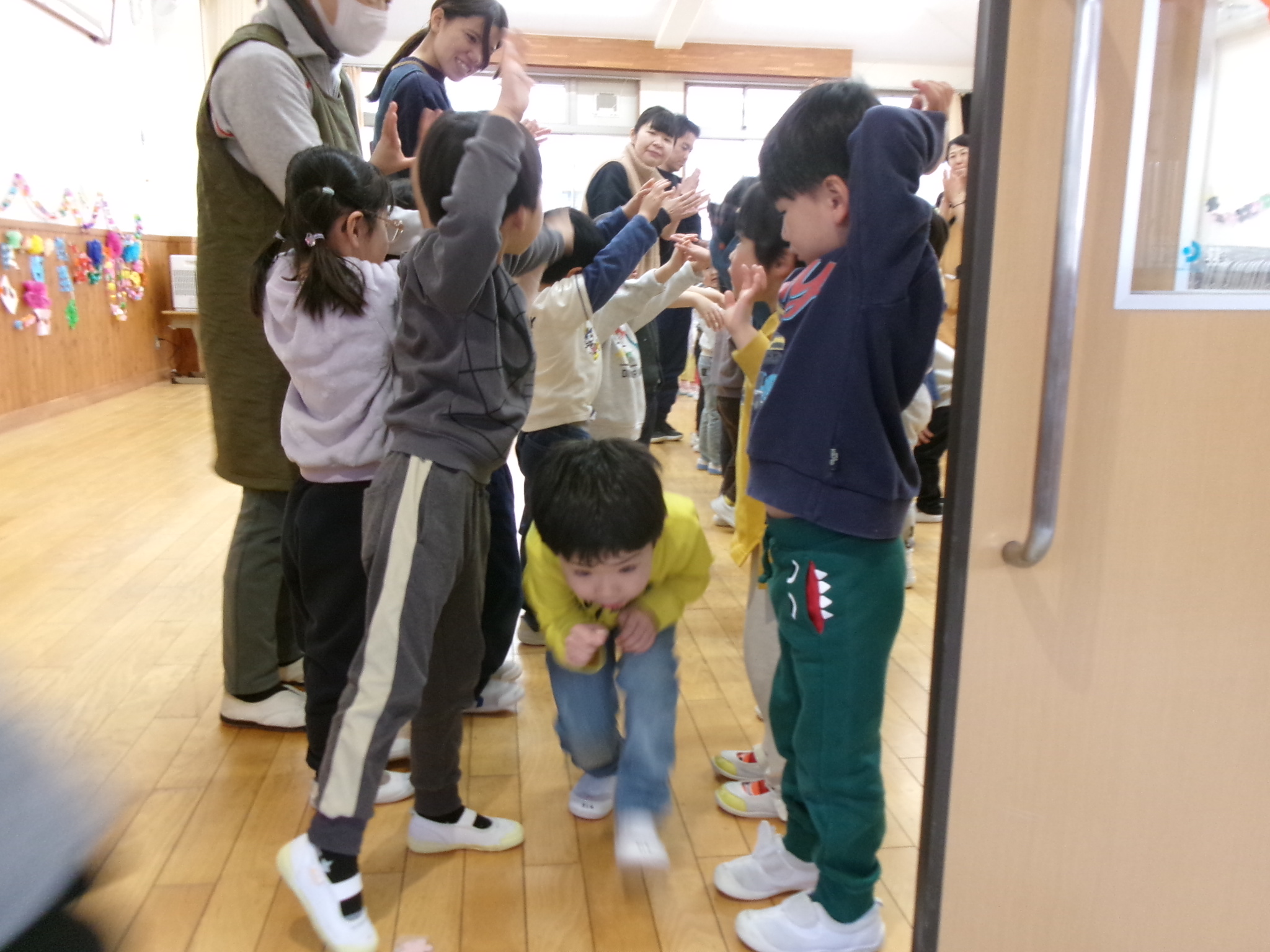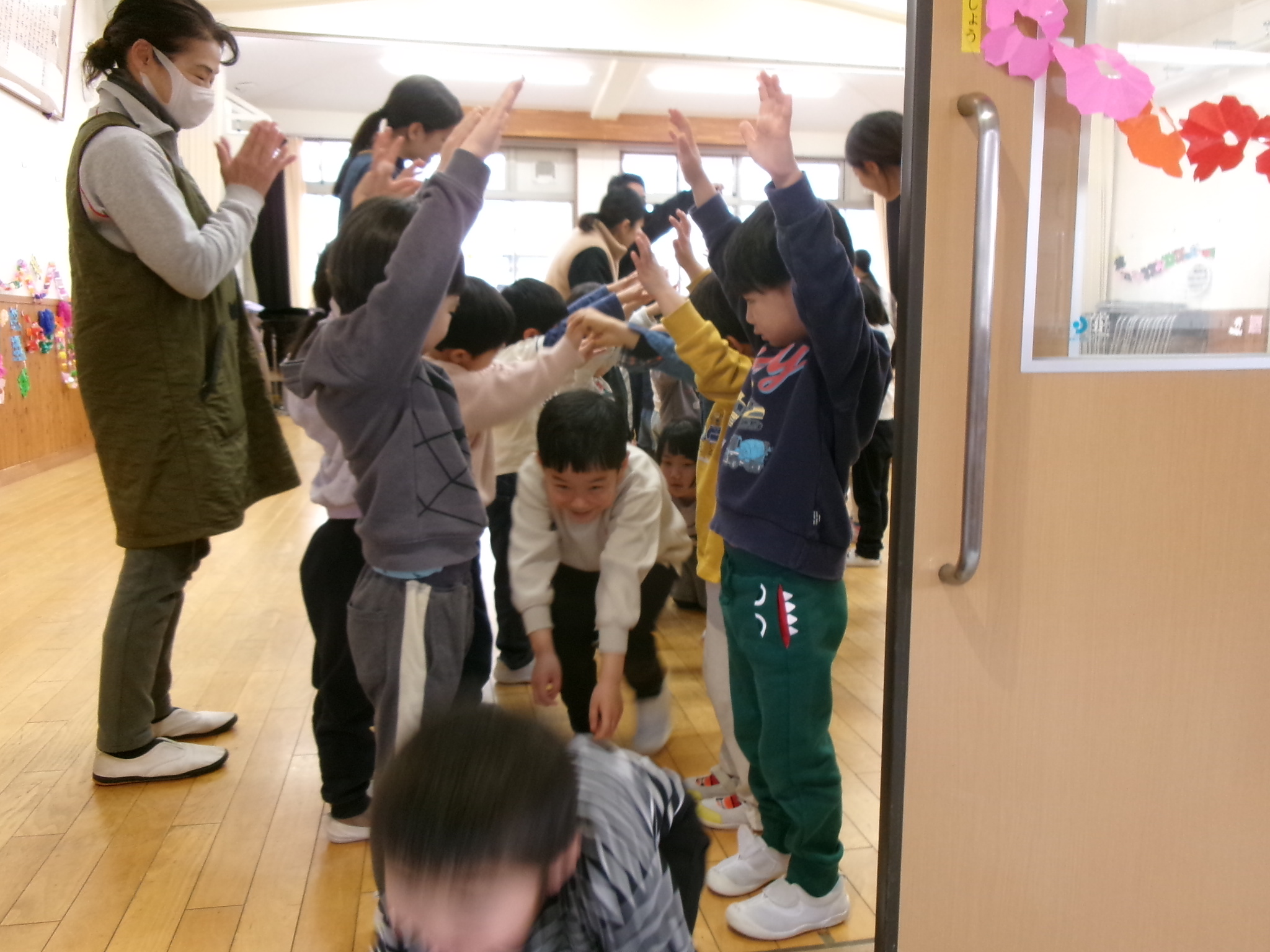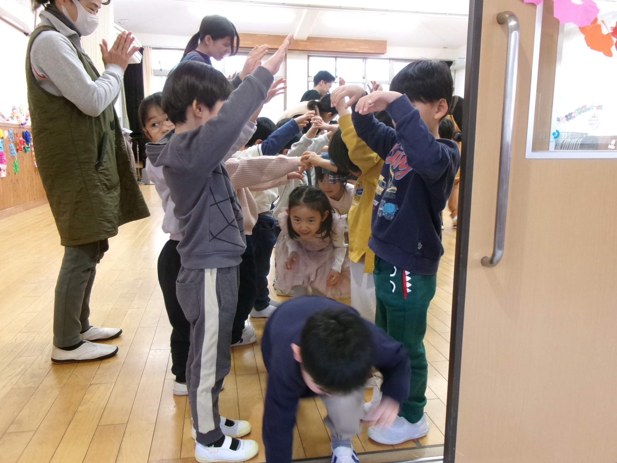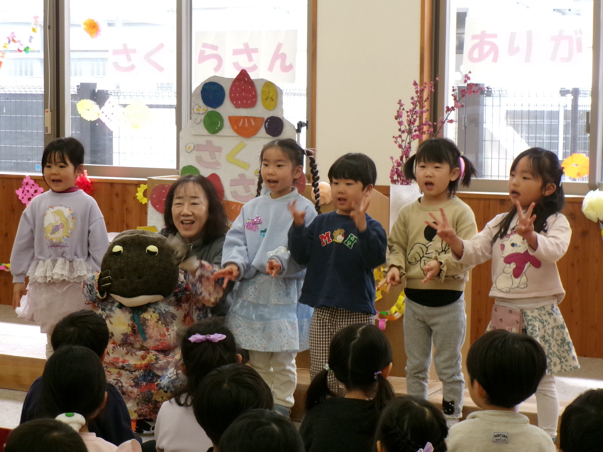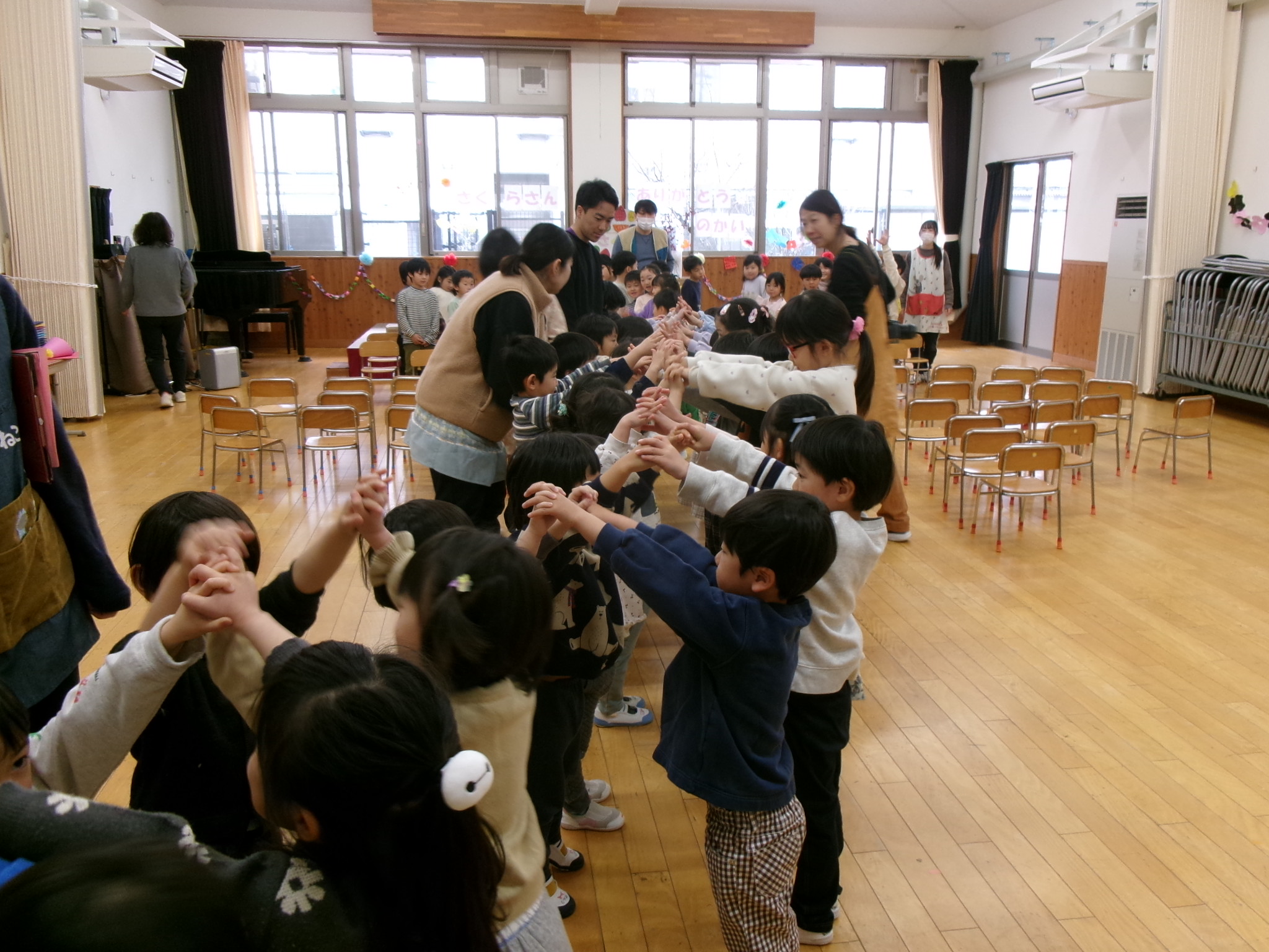 「今日は、みんなの力を合わせて、ありがとうの会を成功させることができたね。4月からは、1つずつ学年が上がります。今のさくらさんみたいに、幼稚園のリーダーとして頑張ろうね。」