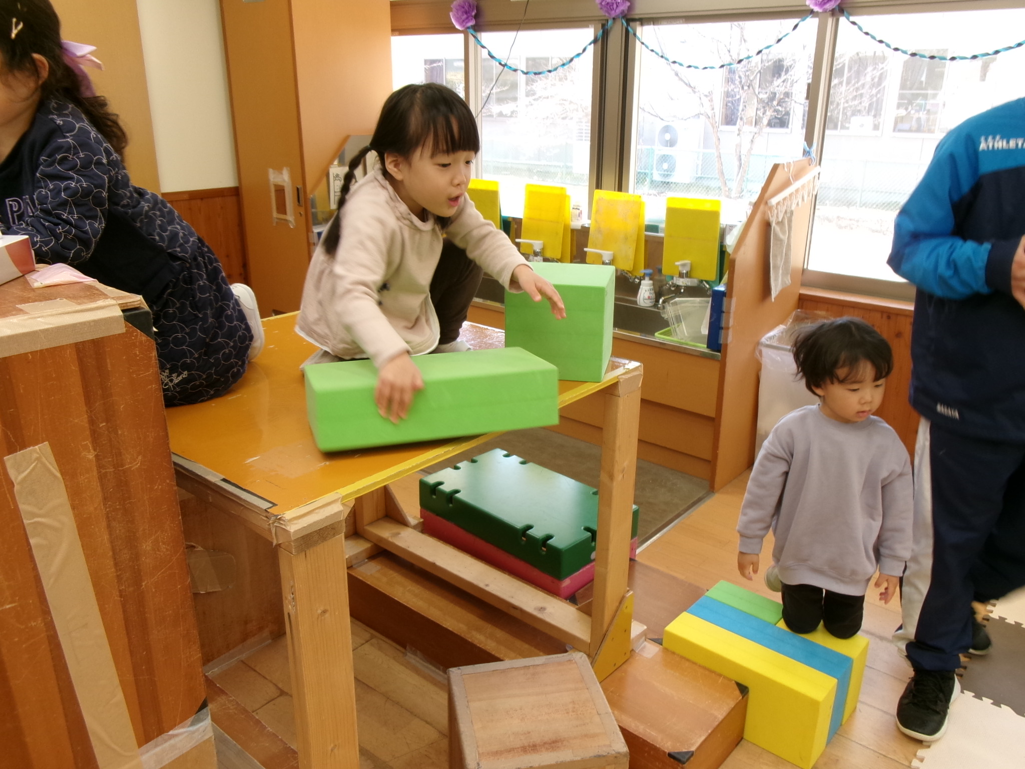 明後日は卒園式です。明日は、半日日課・終業式ですので、年長さんにとっては、附属幼稚園で遊べる最後の日となりました。