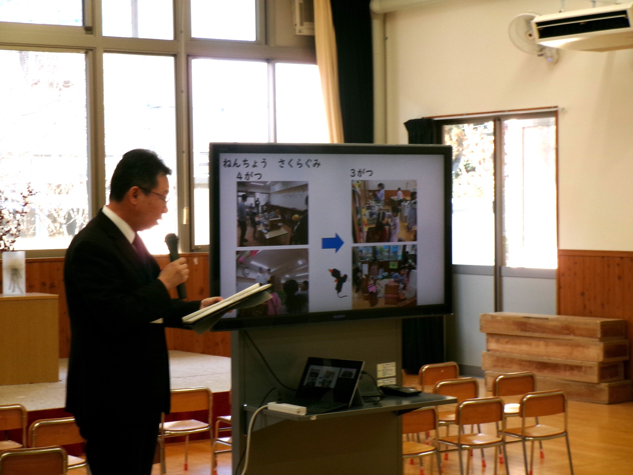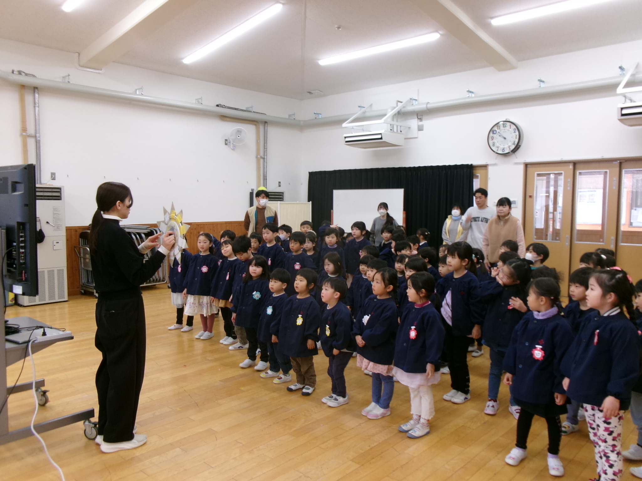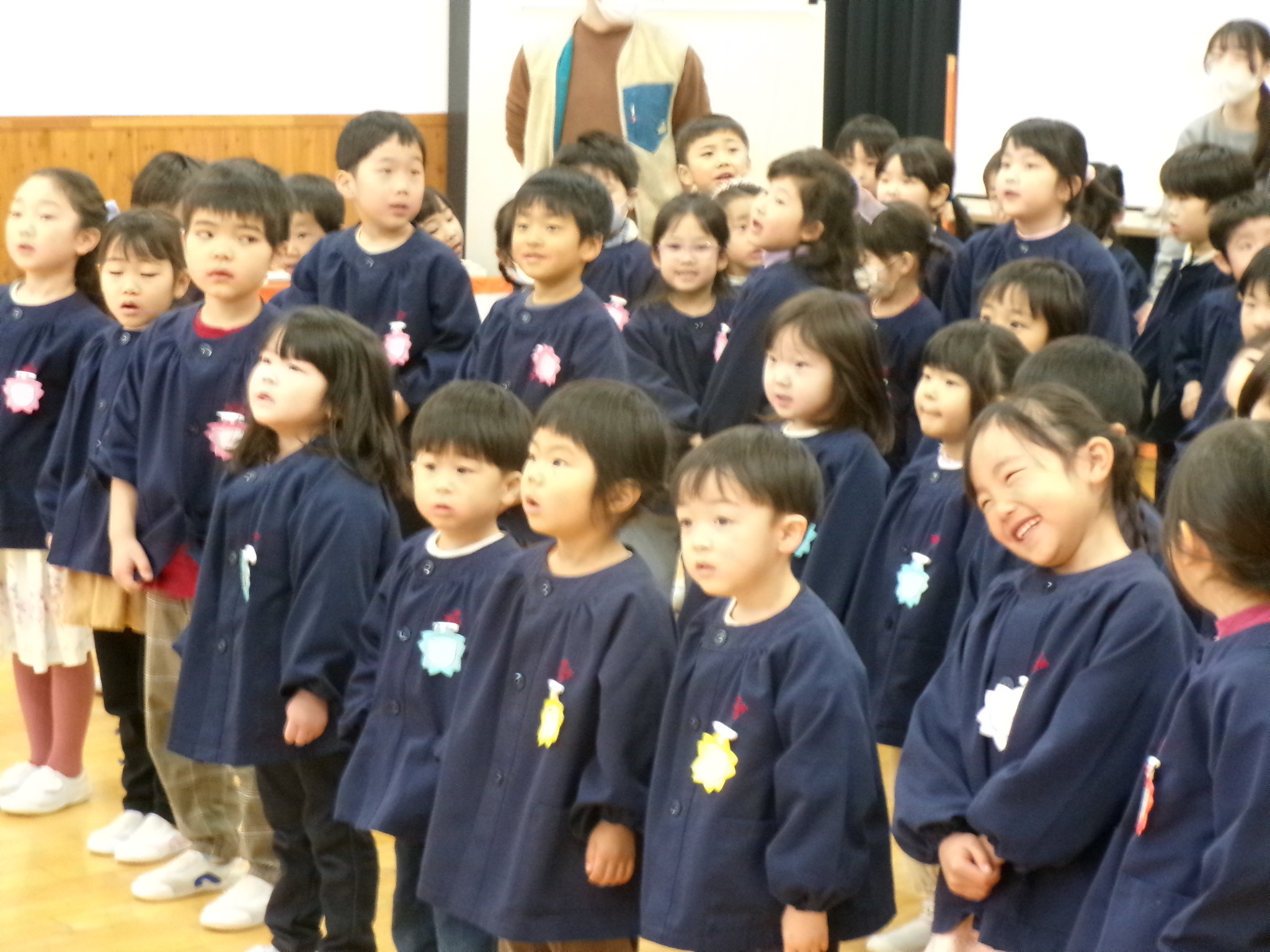 NEWS & TOPICS 2026/03/12 園の様子 2026/03/12 〇三学期終業式 今日は、三学期の終業式でした。 最初に、各クラスの代表が楽しかったことを発表します。 続いて、園長先生のお話をお聞きします。 みんな真剣な表情で話を聞いています。 園歌も歌いました。 明日は、いよいよ卒園式。 さくら組さんにとっての特別な一日を、みんなでつくり上げましょう。 前へ 一覧にもどる