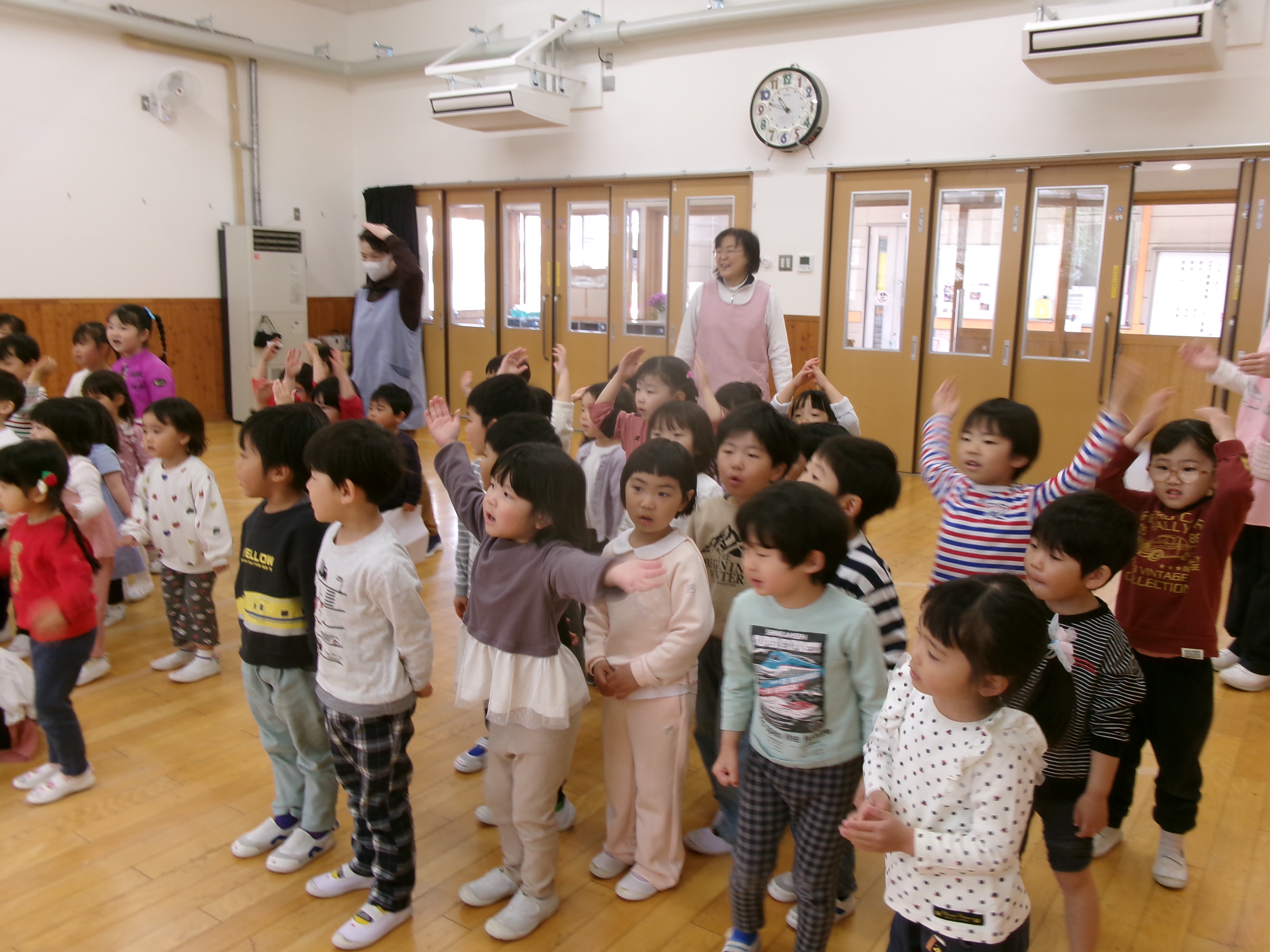 NEWS & TOPICS 2026/04/24 園の様子 2026/04/24 ◯音楽集会 今年度初めての音楽集会がありました。 もうすぐ春の遠足があるので、遠足にちなんだ選曲です。 遠足と言ったら、おにぎりでしょ!ということで、「あ・い・う・え・おにぎり」を歌いました。 あ・い・う・え・おにぎり~♪ あ・い・う・え・おにぎり~♬ 楽しく歌って、遠足がますます楽しみになりました。おうちでも、たくさん歌ってくれるといいな。 ◯保育ドキュメンテーション 前へ 一覧にもどる