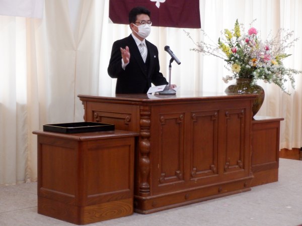 急に気温が上がり,幼稚園の梅がいっきに花ひらいた14日,3学期終業式が行われました。