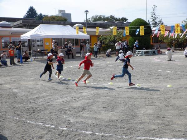 かけっこも,トラック1週を力強く駆け抜けました。前を見て地面を蹴り上げながら走る姿は,小学生みたいでした。