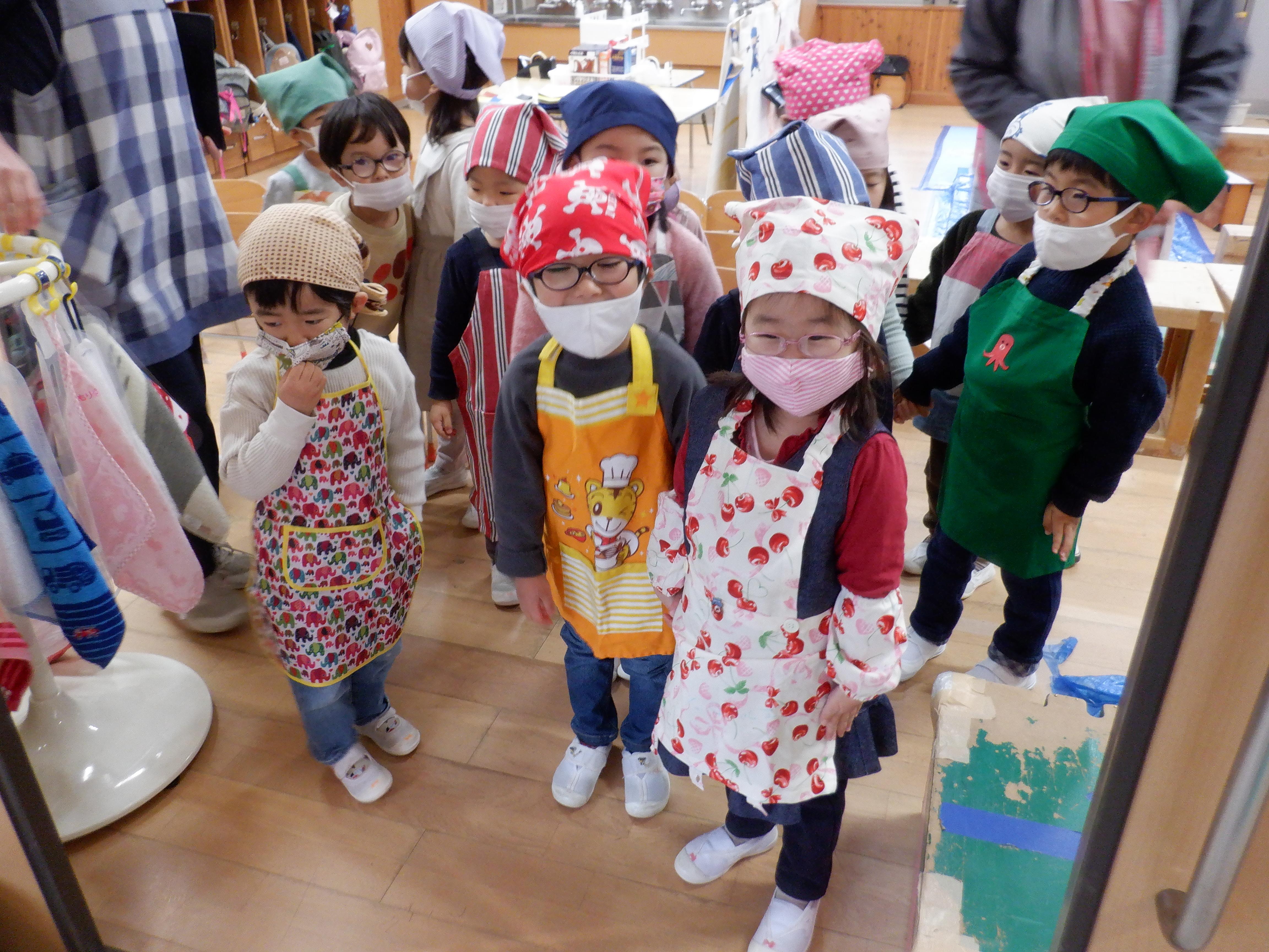 それもそのはず,年少さんは,年中・年長さんのおもちつきを覗きながら,「いいにおい」「ねえ,いつやるの?」「明日?」と,ずっと待っていました。