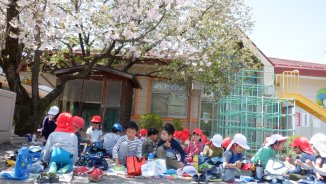 さくら組さんは満開の桜の下でお弁当を。きれいで、おいしくて、最高!