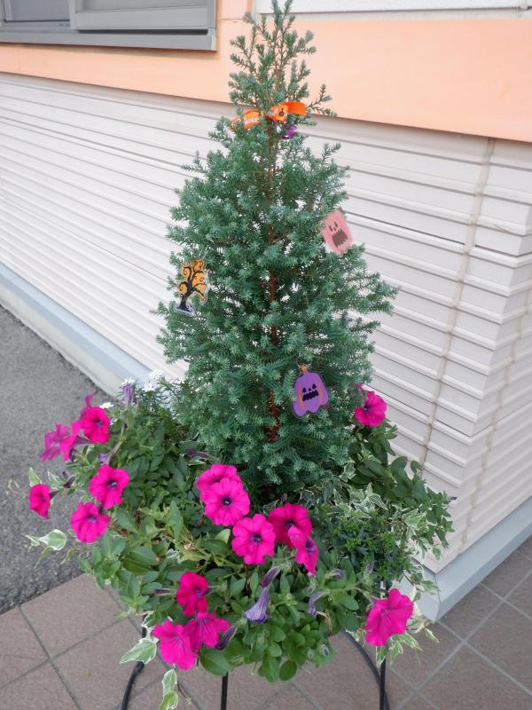 同日、施設部の皆さんが園入り口の寄せ植えをハロウィン仕様にしてくださり、子どもたちは早速「ああっ!」と、反応していました。ありがとうございます。