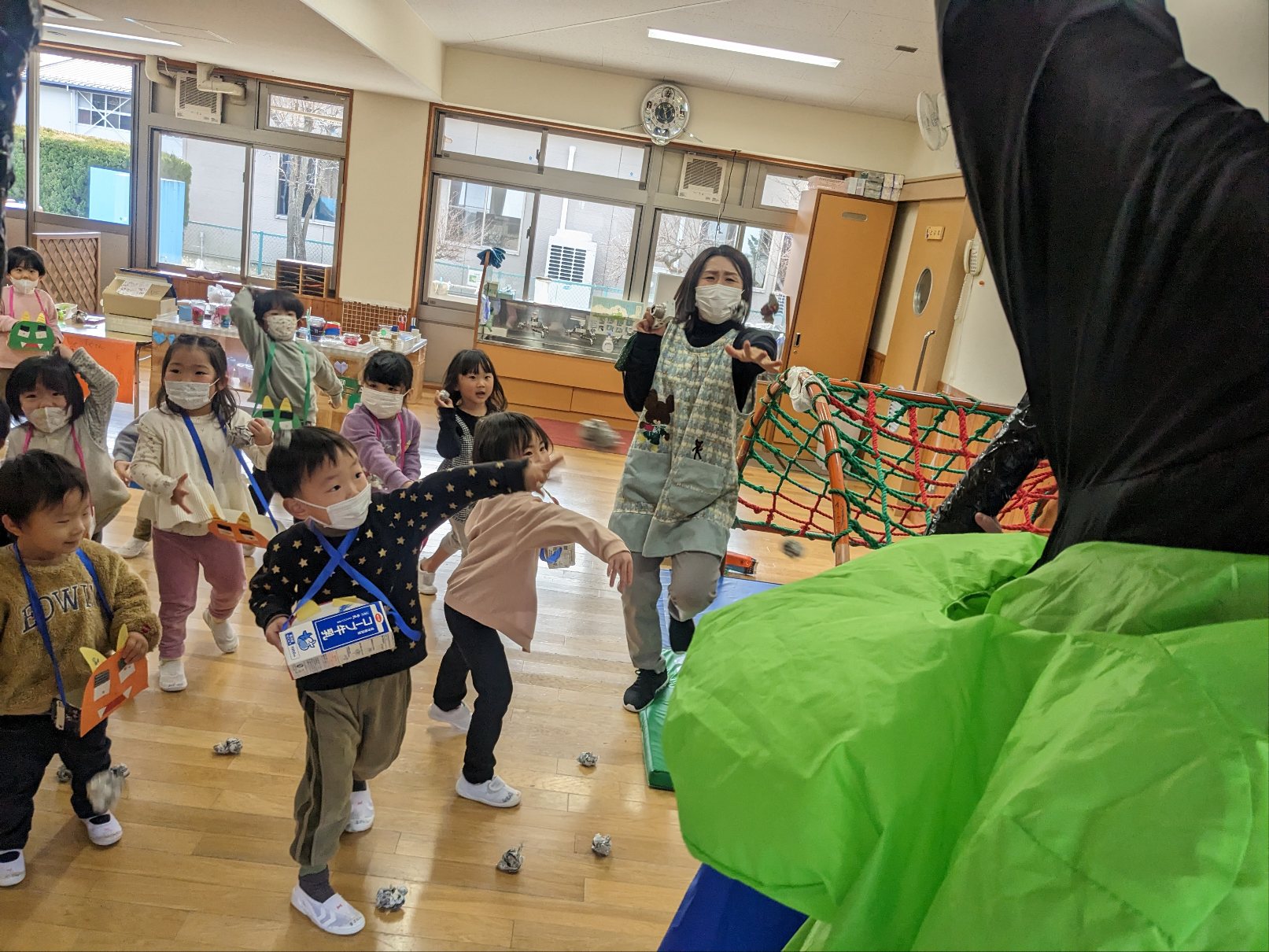 保育室に戻ったその後は、いつおにがやってくるのかドキドキしながら待っていると・・・。