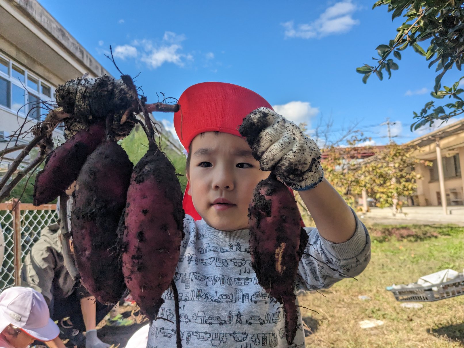 やったー!こんなに大きなサツマイモさんがとれたよ!!