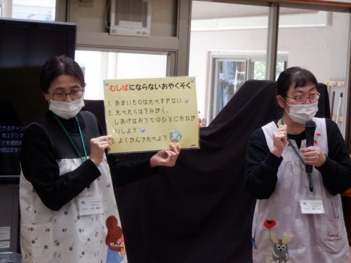 歯科衛生士さんから、歯をきれいにすることの大切さについてお話いただきました。