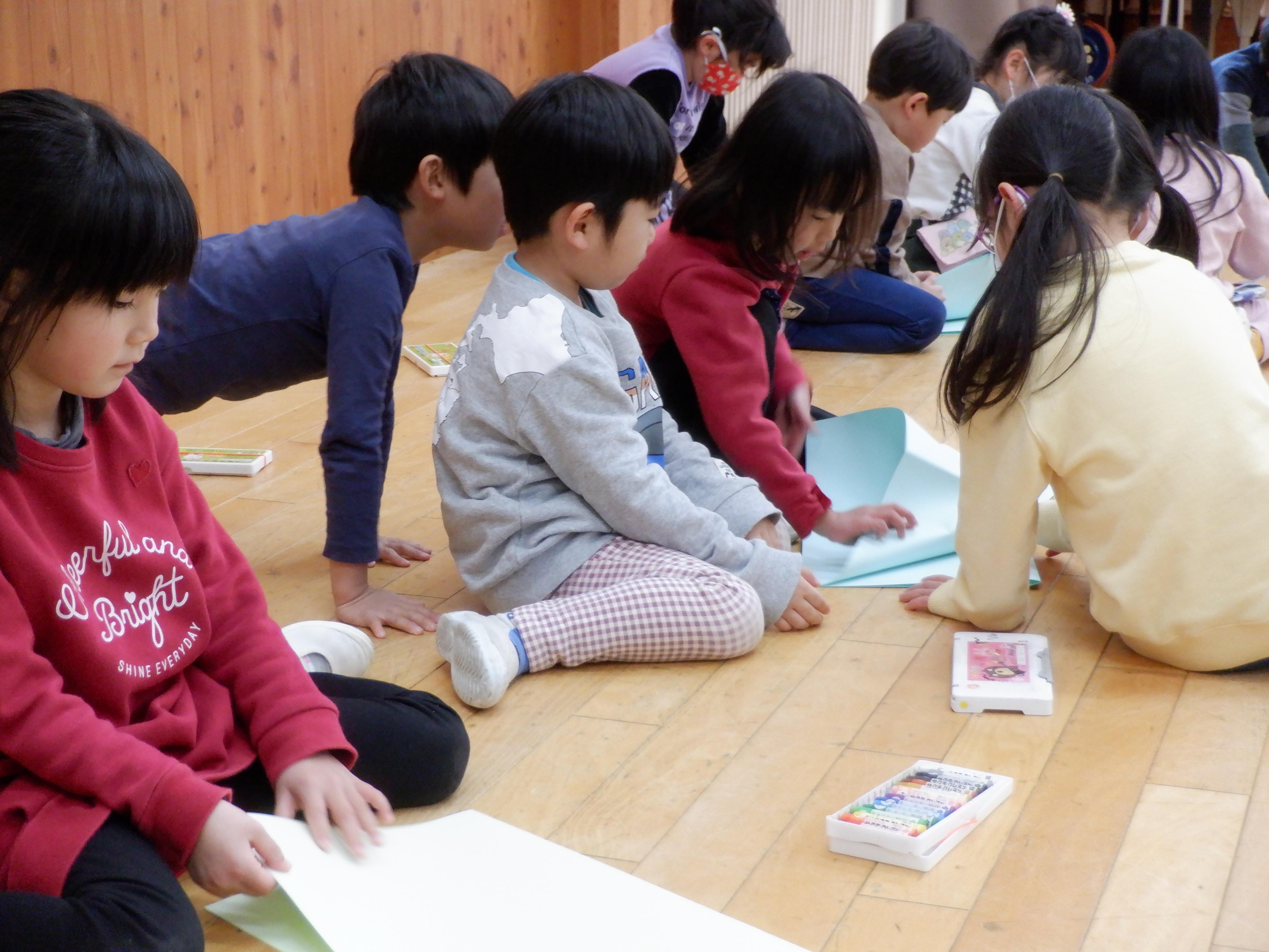 豆まき用のマスを作ったり、節分のお話を聞いたりしていると・・・