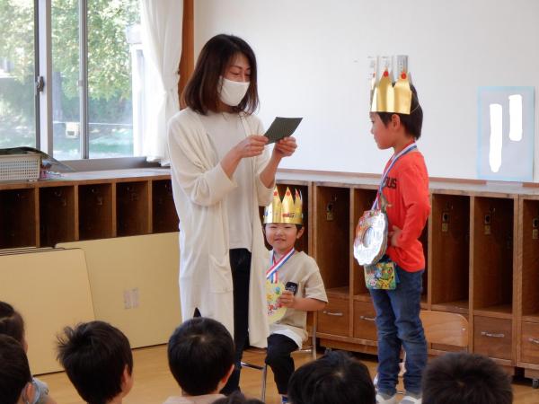 年中さんも年長さんの主役たちも,お家の方からお祝いのメッセージをいただいたり、みんなから「Happy birthday to you」を歌ってもらったり、