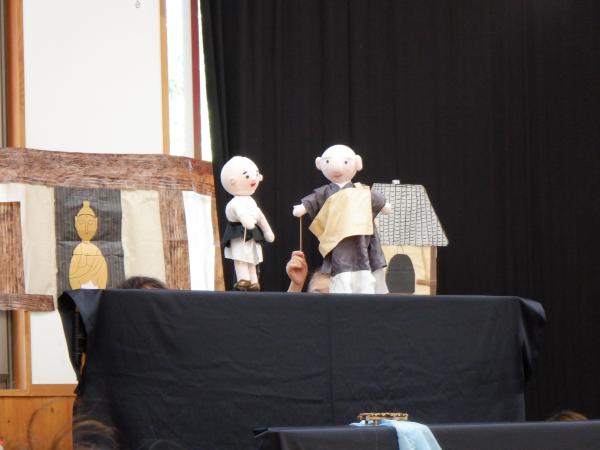 本年度1回目の観劇会がありました。この日に公演してくださったのは,昨年度に引き続き人形お芝居「おぼっこぼっこ」さんです。