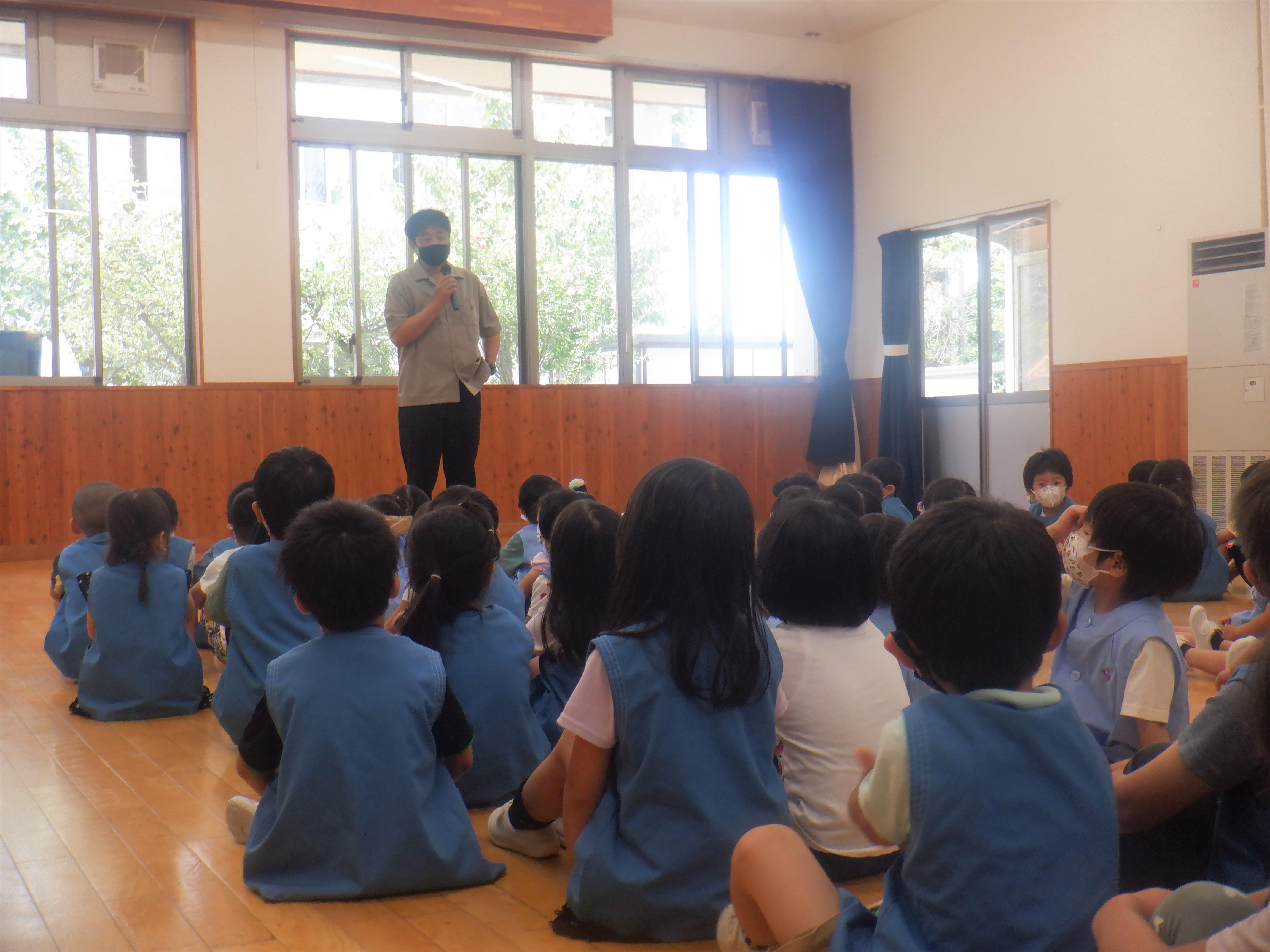 その後の大野副園長先生のお話でも「4人のお友だちが上手に発表できて,そのお友だちの発表をみんながしっかり聞けて,びっくりしました」とほめられ,またニコニコ顔。