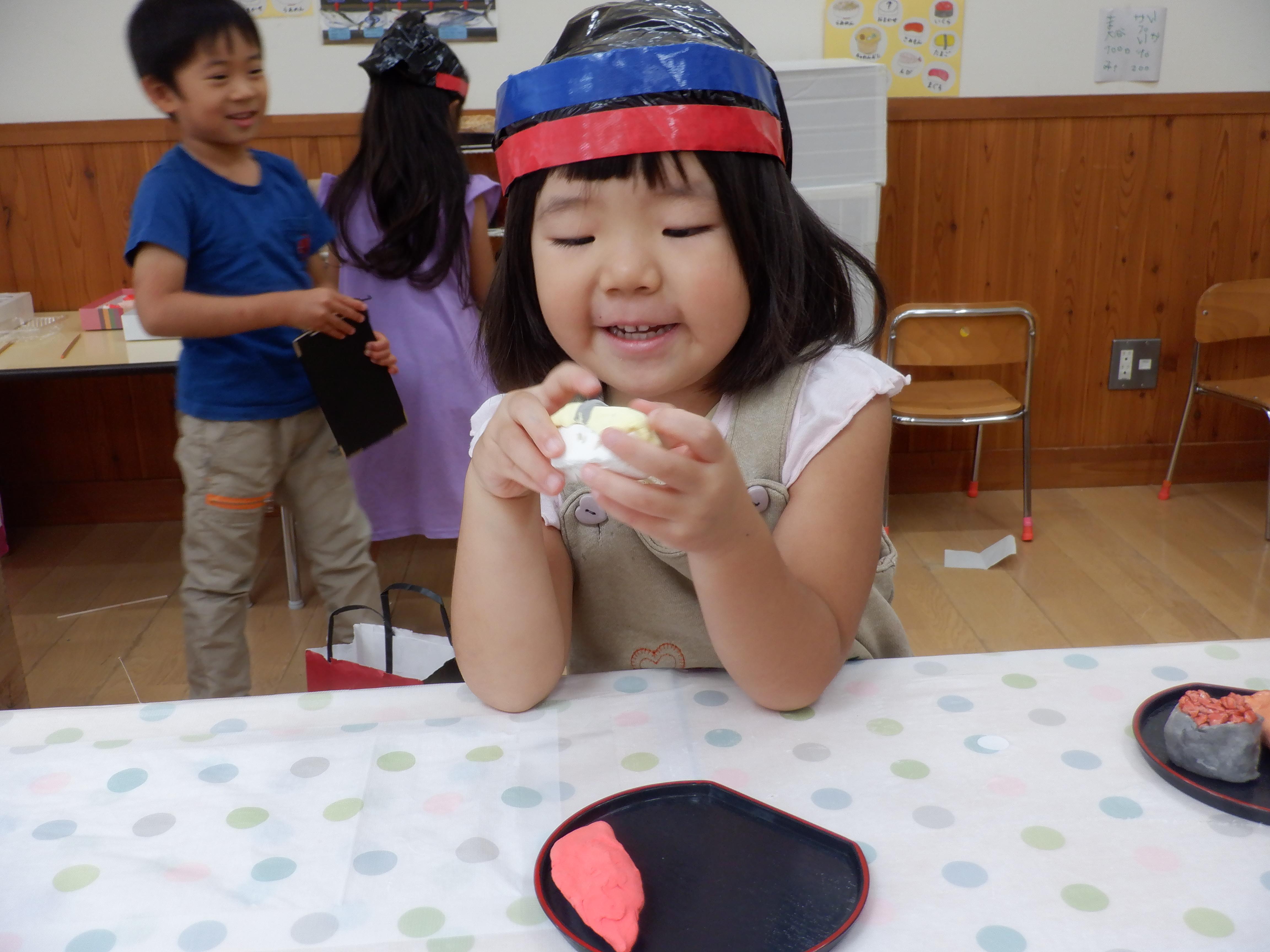 うめ組にはお寿司屋さんが登場。「イクラください」「マグロお願いします」...連日お客さんでにぎわっています。