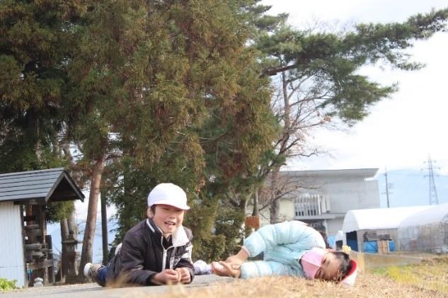 臨時休業明け初日。学校の周りは春の自然にあふれていました。神社へ続く田んぼの畦道は自然の宝箱。子どもたちは神社への散歩を続けました。秋になると落ち葉いっぱいの神社でお宮掃除に取り組みました。神社へ続く道から歌が生まれ、地域の方との出会いが生まれていきました。「歩こう、歩こう、神社へ続く」子どもたちの成長と思い出がいっぱい詰まったふるさとの道がここにあります。