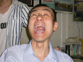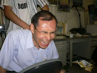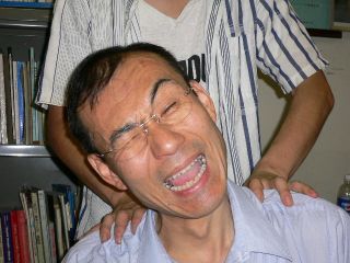 学生からマッサージをされて喜ぶ教員