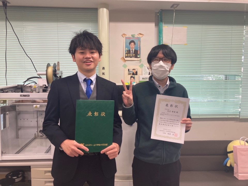 B4の小池さん,近広が成績優秀者として表彰されました!(2021年3月23日)