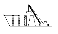 て架ければよいでしょう。一番単純な方法は、右奥の図のように、河原に台(足場)を組み、工場で作った桁の“部品”をクレーン車でその足場に次々と乗 せていく、というものです。
