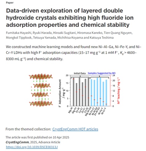 林文隆准教授・手嶋勝弥教授らの論文がCrystEngComm誌のHot Articlesに選出されました。