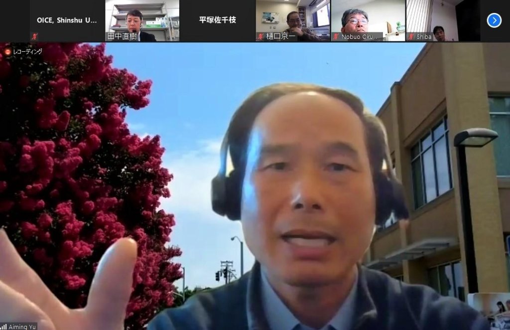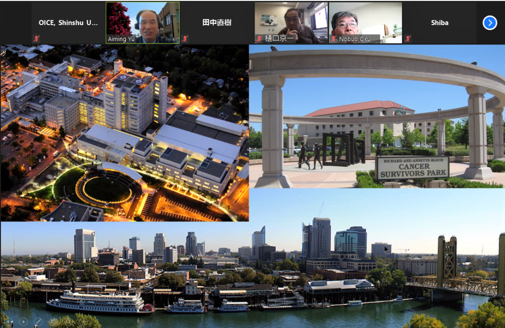 海外協定校の教授によるオンライン講義は本学部医学科にとって新たな試みでしたが、Aiming教授はマイクロRNA研究のフロントランナーとして、基礎知識をわかりやすい英語、簡明なスライドで丁寧に教えてくださいました。今回の企画は3回シリーズとなっており、次回はより専門的な研究内容をお話しいただく予定です。このような機会を通して、我々の知識のアップデートだけでなく、UC Davis校と信州大学との共同研究や学生・研究者交流の活性化につながればと願っております。