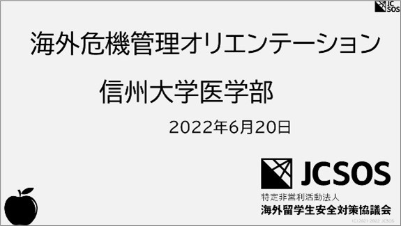 信州大学医学部では、2022年秋に医学部5年次生の海外研修を再開する予定です。一方、海外では盗難や災害、疾病に見舞われる可能性もあります。派遣学生は、渡航先で無事に過ごし、安全に帰国するためには、危機の回避法や対応法を確実に身に着けておく必要があります。