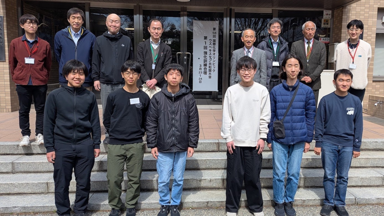 3月23日から1泊2日の日程で、第58回国際化学オリンピック ウズベキスタン共和国大会(2026年7月開催)に出場する日本代表生徒の第1回強化訓練合宿が、信州大学理学部にて日本化学会オリンピック小委員会との共催で行われました。合宿では本大会を想定した実験指導のほか、代表OBによる講義・演習が行われました。