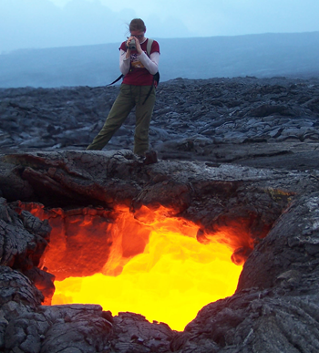 ハワイ島キラウエア火山での溶岩流の温度測定