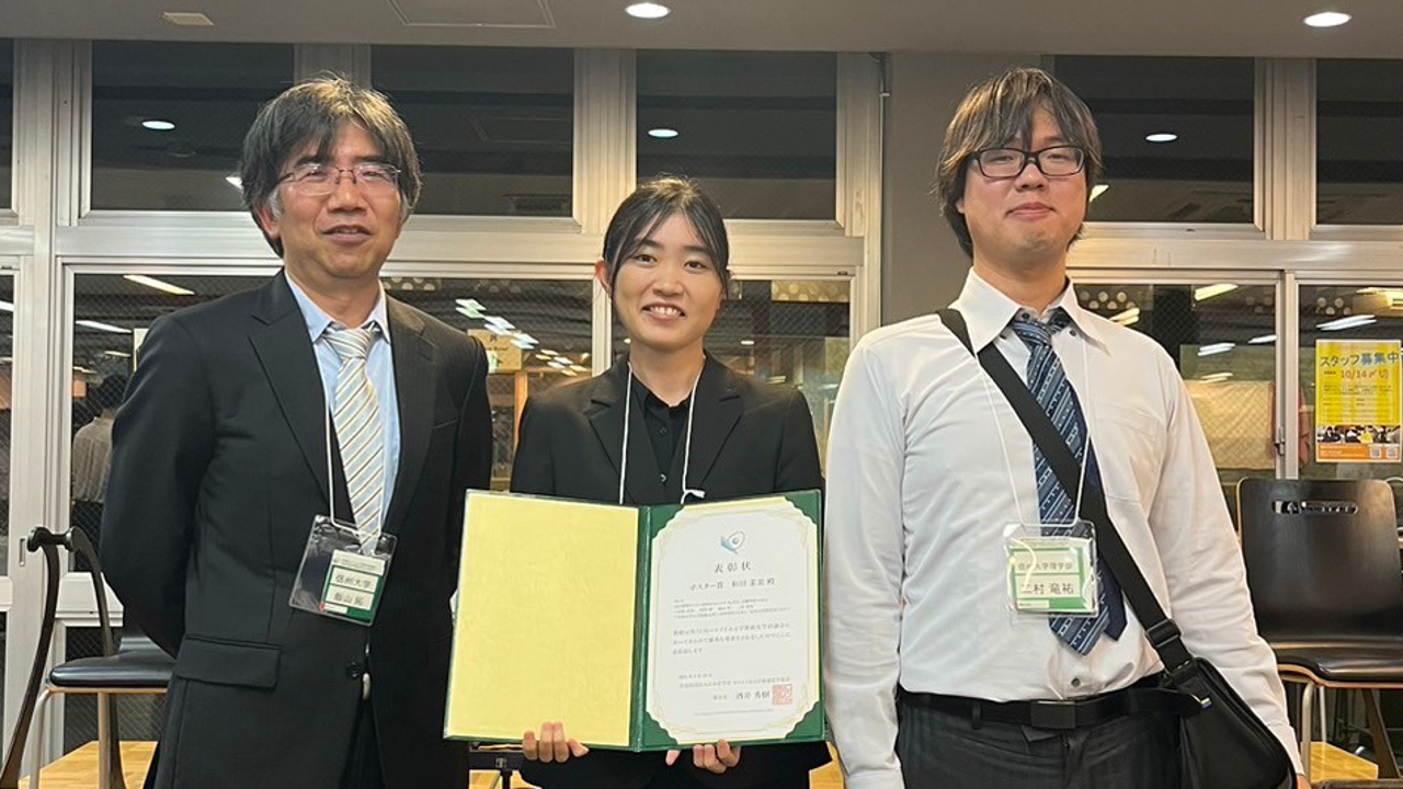 2024年9月17日~20日に、宮城県仙台市で行われた第75回コロイドおよび界面化学討論会において、総合理工学研究科理学専攻修士課程1年(化学ユニット 飯山・二村研究室)の和田茉美さんが、ポスター賞を受賞しました。受賞題目は以下のとおりです。