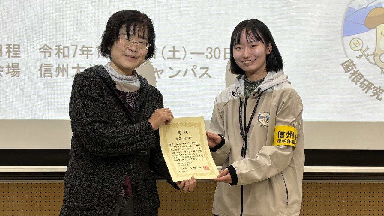 物質循環学コースの金澤姫さんが根研究学会において優秀発表賞を受賞しました