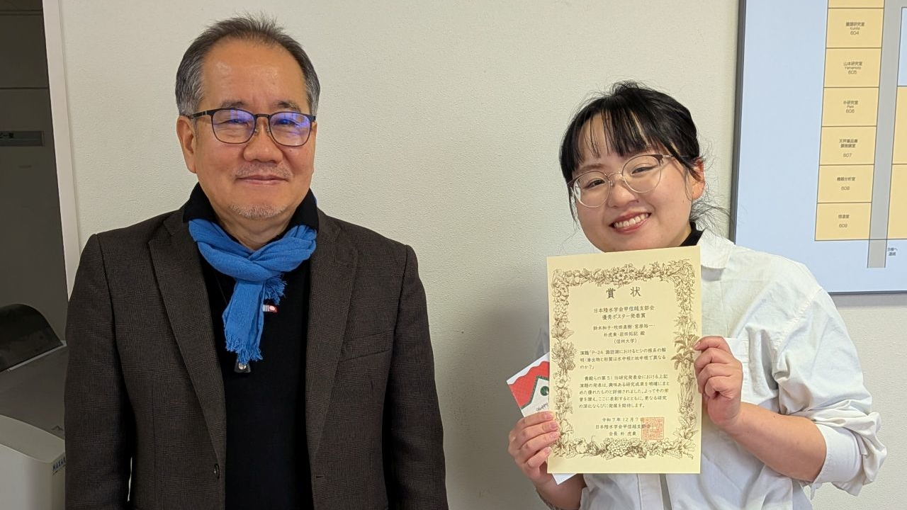 物質循環学コースの鈴木和子さんが日本陸水学会甲信越支部会においてポスター賞を受賞しました。