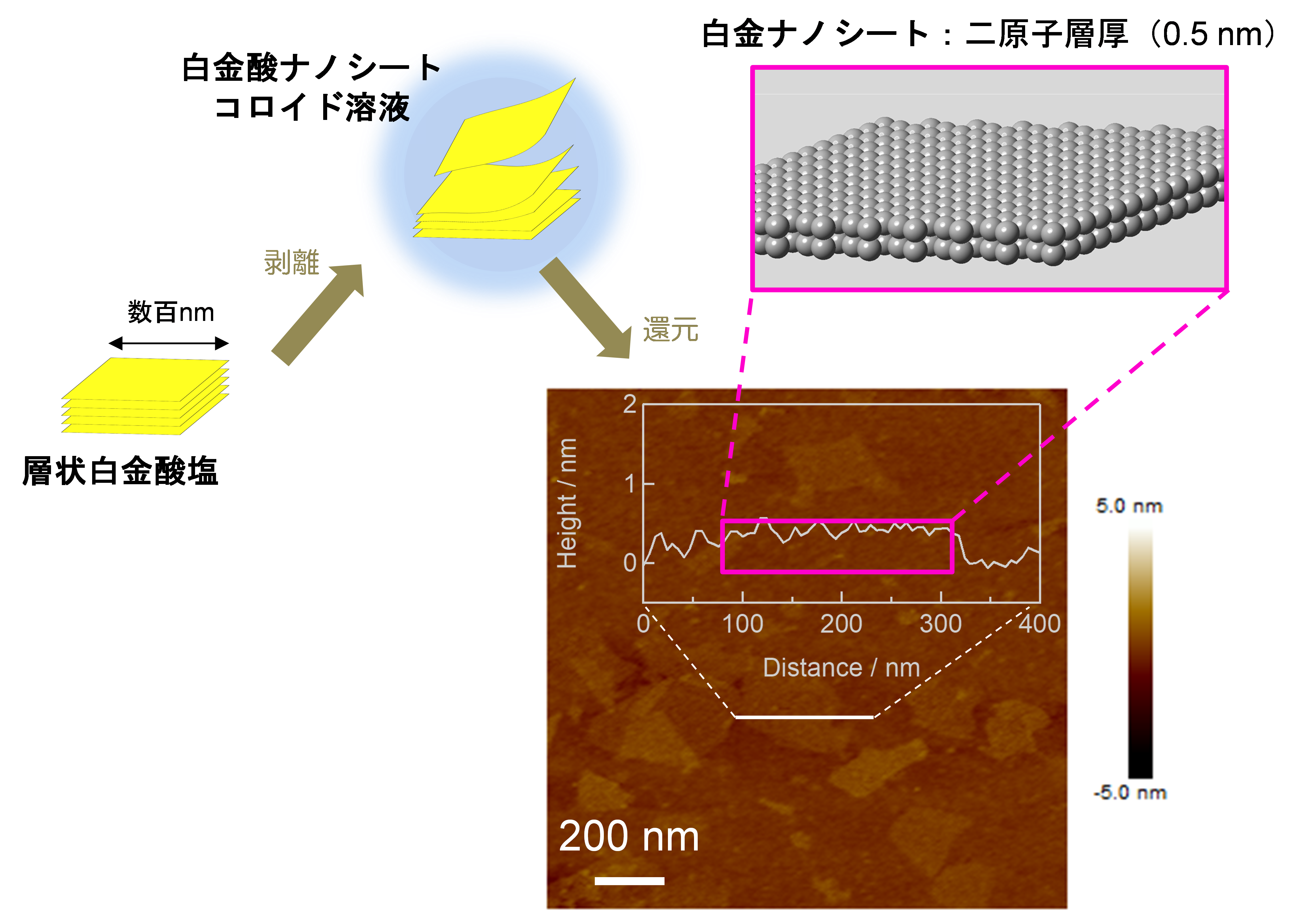 白金ナノシートの合成経路とイメージ図