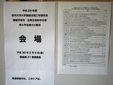 応用生物科学分野 修士論文公聴会 平成30年2月9日