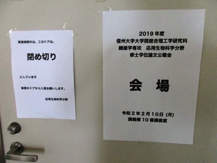 応用生物科学分野 修士論文公聴会 令和2年2月10日