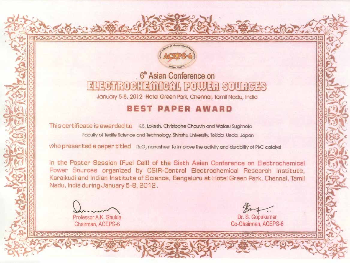 Poster Award at the 6th Asian Conference on Electrochemical Power Sources