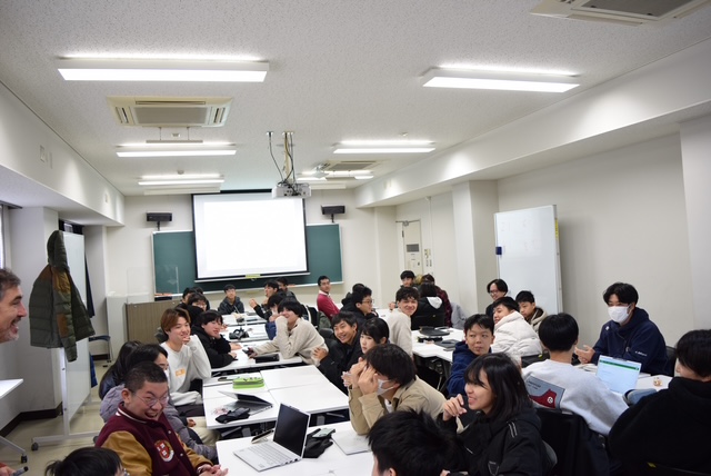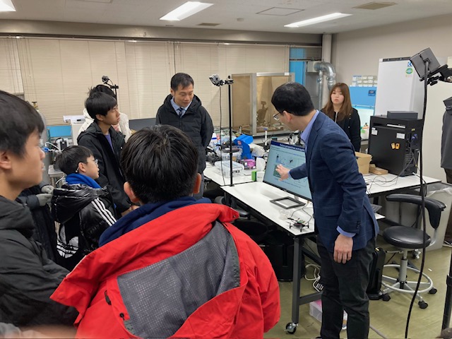 令和7年12月5日(金)9:30~12:00に、機械ロボット学科 小林俊一教授、照月大悟准教授、グローバル化推進センターのバレラ講師の協力のもと、香港で数理・データサイエンス・AIを重点的に学ぶ高校生や関係教職員をお迎えし、本学教職員と交流するプログラムを実施しました。交流プログラムにおいて、高校生は、真綿・蚕糸館で角真綿の実習を行ったり、照月研究室にてドローンを使ったバイオエンジニアリングとロボット工学の研究に