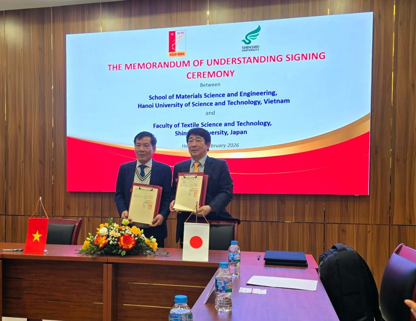 令和8年2月6日、繊維学部の金翼水卓越教授が学部長代理として、ベトナム・ハノイの同大キャンパスを訪問し、材料工学院長のHUYNH Trung Hai教授と協定書を交わしました。
