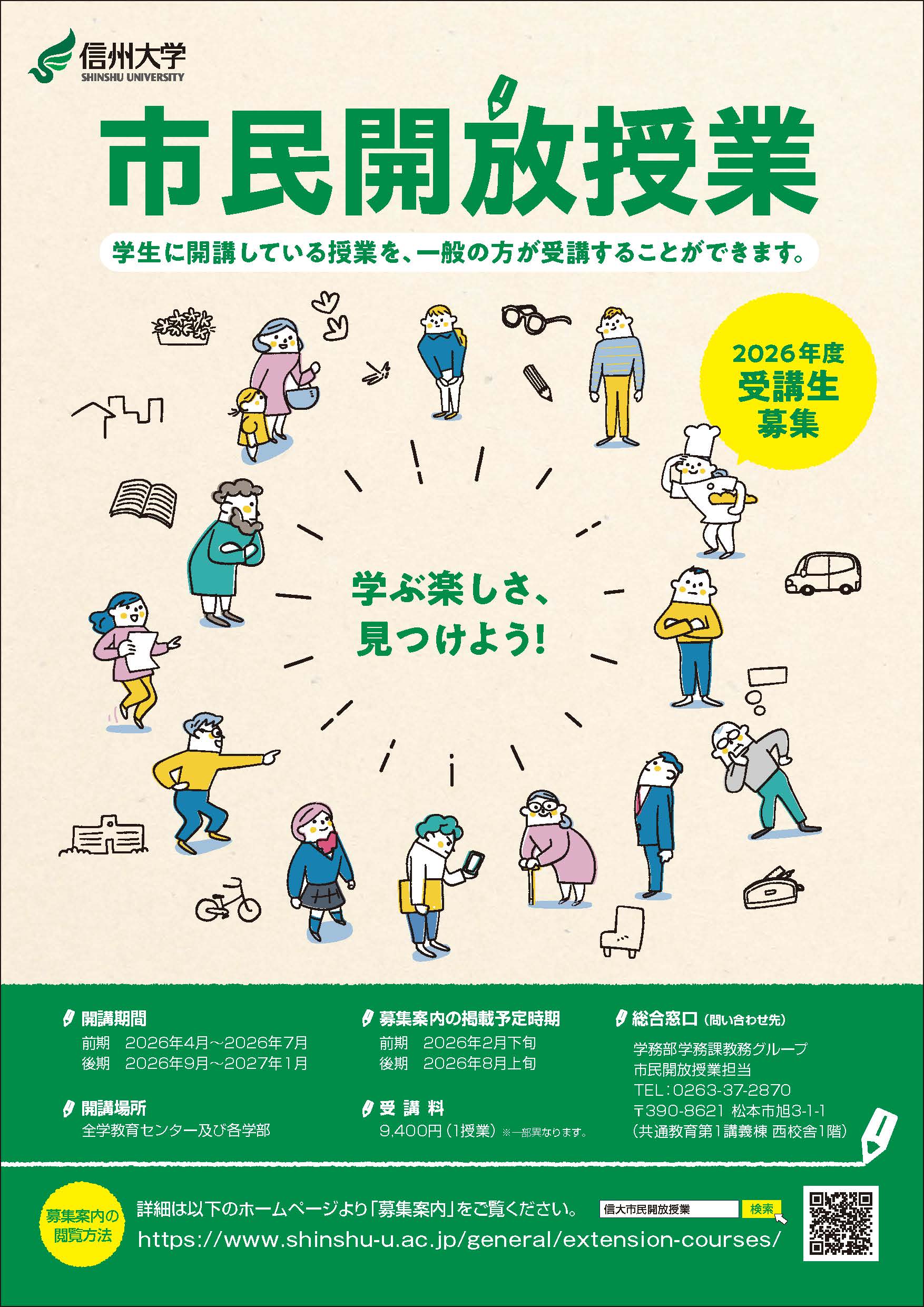 2026年度前期 市民開放授業の募集については、こちらの募集案内(3/9更新)をご覧ください。
