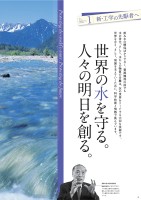 世界の水を守る。人々人々のの明日明日をを創る。創る飲み水の確保ばかりでなく、資源獲得の面でも水の浄化、そして、水からの物質の分離は、次の世界をリードする大切な技術です。世界を守り、そして、発展を支えていくために、科学技術と情熱で挑んでいます。Protecting the world's water. Protecting the future.Bea newengineeringpioneer1ggggggggggggggfffffff遠藤守信 特別特任教授触媒気相法カーボンナノチューブの発見と開発で国際的に著名。水の浄化技術への応用でも重要な役割が期待されている。8新・工学の先駆者へ