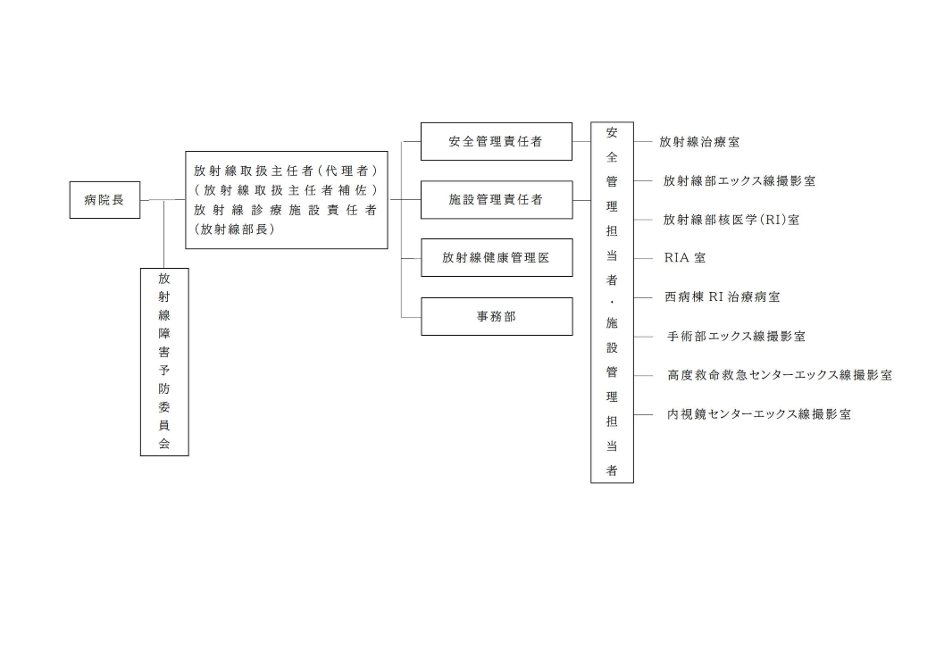 第6条 病院長は,事業所における放射線障害の発生の防止及び安全の確保に関し統括するとともに,放射線診療施設を管理する。