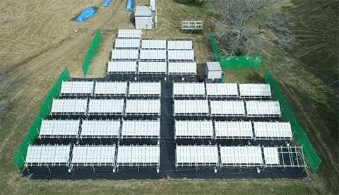 Our laboratory develops panel reaction systems toward large-scale application of particulate photocatalysts for water splitting. The aforementioned Al-doped SrTiO3 photocatalyst can be readily processed into sheet by coating onto substrates. It has been confirmed that such photocatalyst sheets housed in a panel reactor can decompose water continuously and transport the generated gas smoothly even when the water thickness is merely 0.1 mm. In 2019, in collaboration with the Domen Laboratory of the University of Tokyo, the construction of large-area water-splitting panel reaction systems was started, and the operating characteristics of the photocatalyst panels and associated equipment are under investigation for a long time. The reaction system, which consisted of a photocatalytic panel reactor with a light-receiving area of 100 m2 and a gas separation module based on separation membranes, continuously decomposed water for about one year in an outdoor environment. In addition, by connecting the gas separation module, hydrogen gas was separated from the generated hydrogen-oxygen mixed gas with a purity of 96.5% at a recovery rate of 95%. Furthermore, by installing a mechanism controlling the gas flow rate in the gas separation module autonomously, the gas separation performance was maintained regardless of the sunshine conditions. Further research is in progress to reduce the cost and increase the scale of photocatalyst panel reactors and improve the separation performance and energy efficiency of the gas separation processes. Additionally, one of the largest demonstrations of photocatalytic hydrogen production in Japan is planned on a 5,000-m2 plot of land in Iida City, Nagano Prefecture.