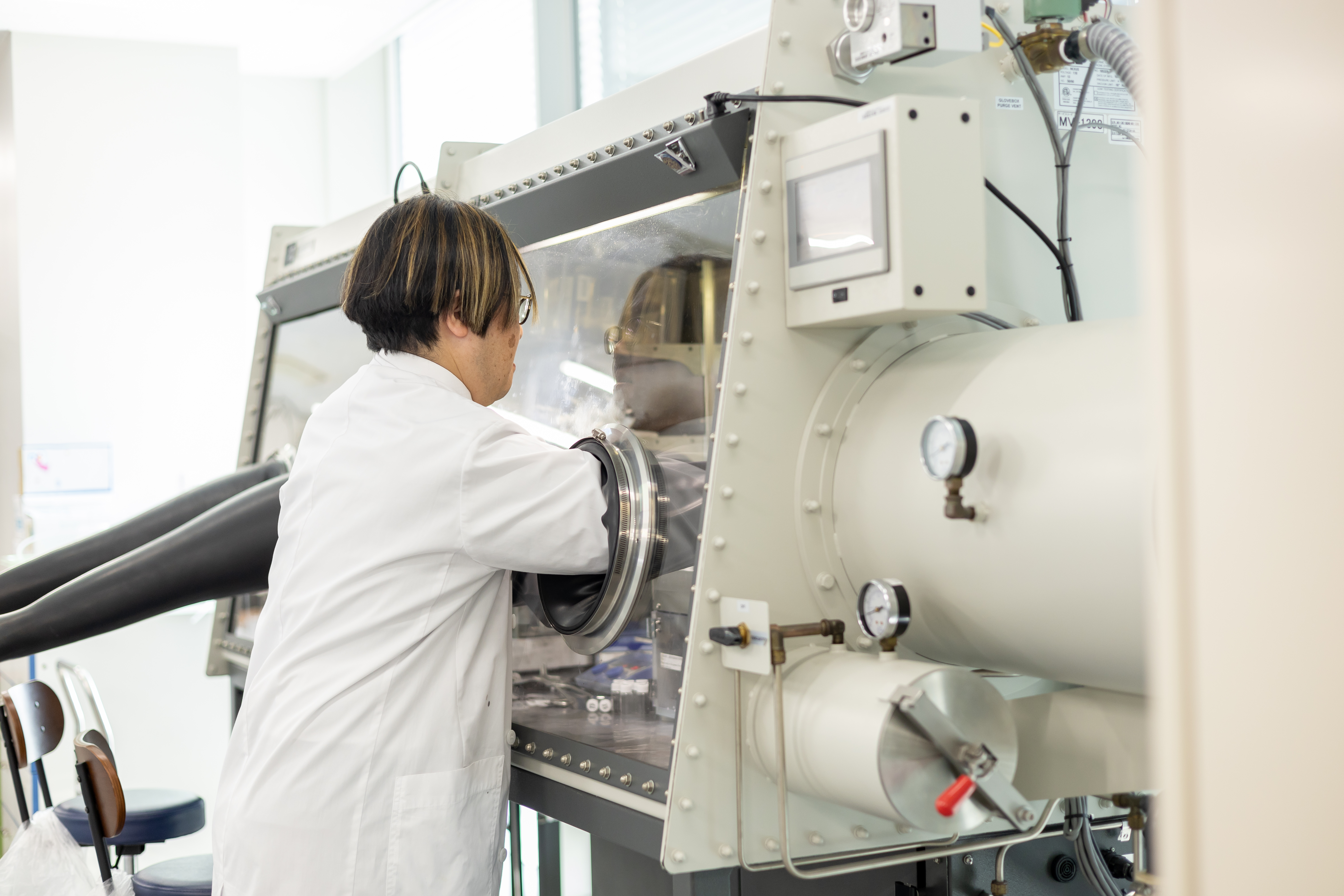Rechargeable batteries are used in many things around us, such as electric vehicles, smartphones, and laptops. Lithium-ion batteries, which use lithium for the electrodes, are widely used, but there is a risk of fire if used incorrectly, and some safety issues have been pointed out. In this context, our laboratory is working on developing an "aqueous battery," which is extremely safe. While flammable substances are used in the electrolyte of lithium-ion batteries, aqueous batteries use water as the electrolyte. Even if a fire occurs due to a short circuit or other cause, the battery will not ignite, so the risk of fire and the spread of fire is minimized.